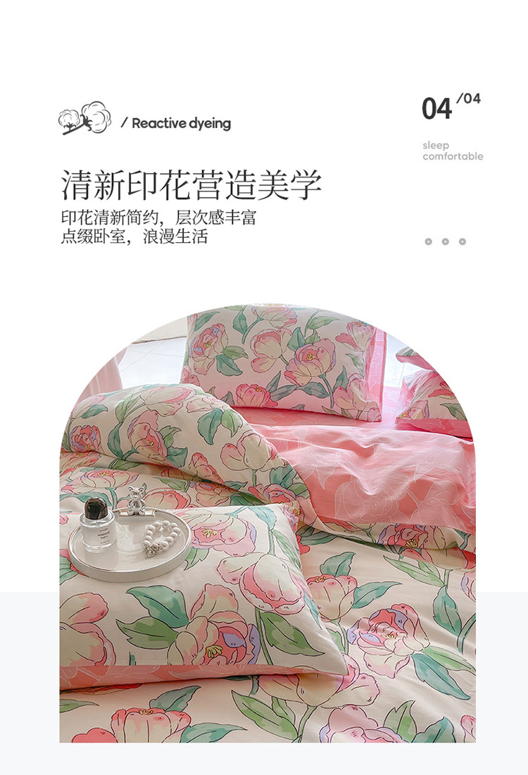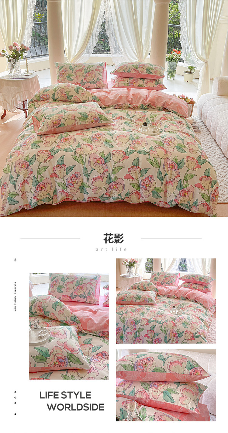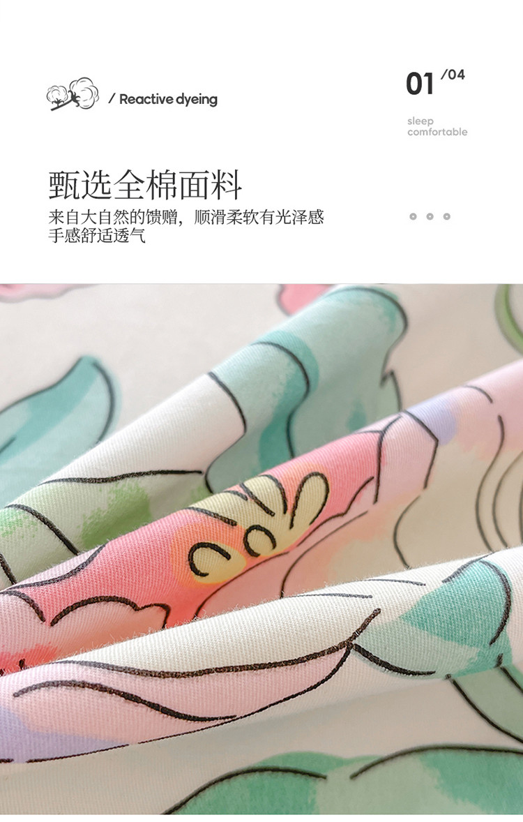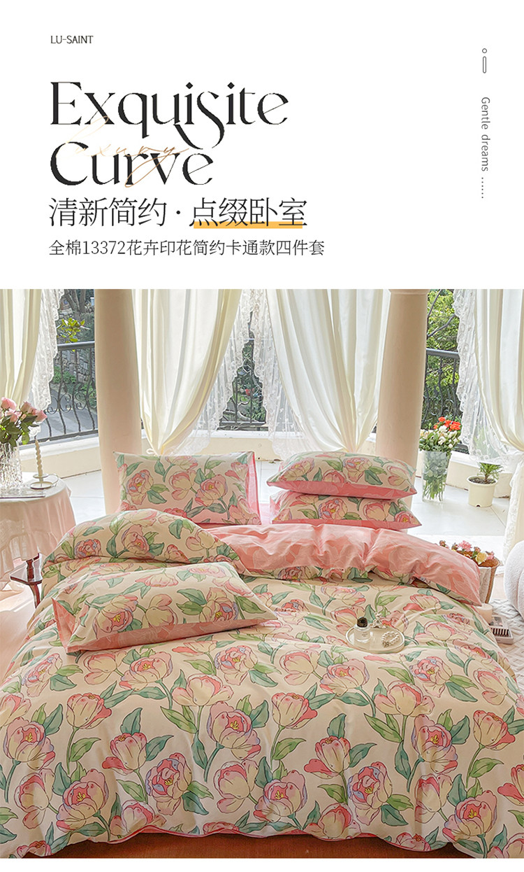 星巴k家纺2023新款全棉13372花卉印花简约卡通款多规格四件套花影