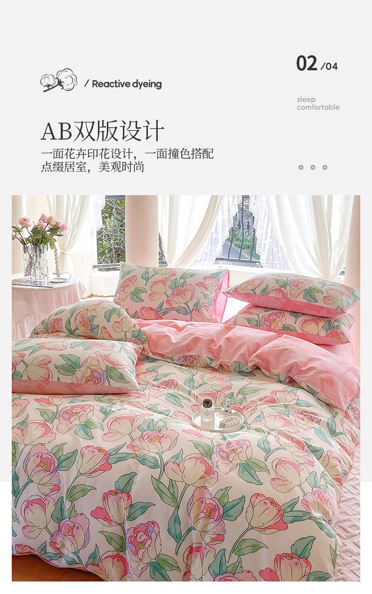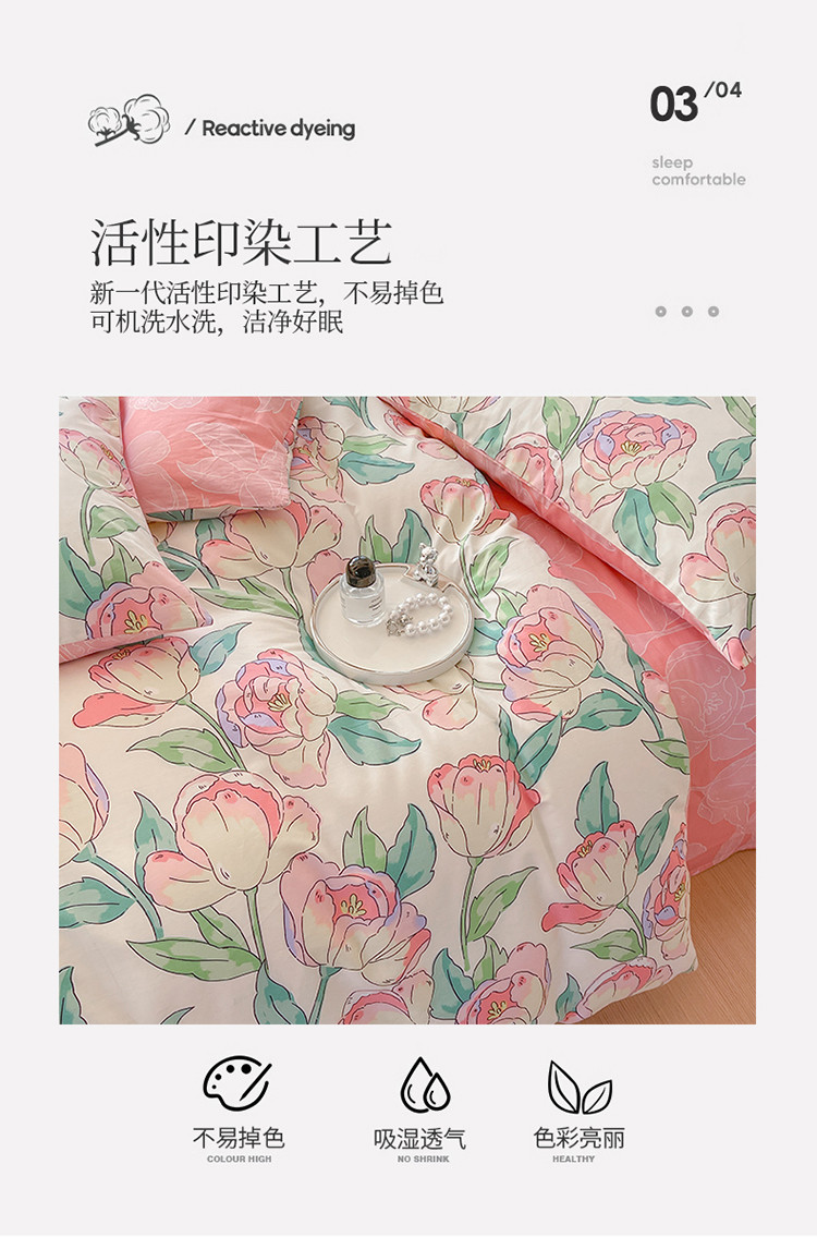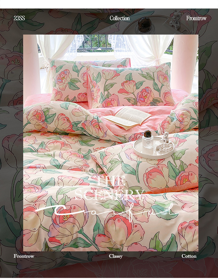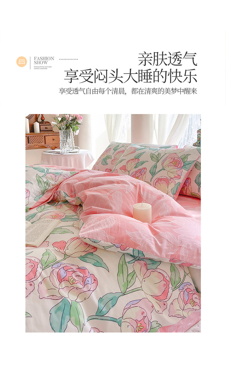 星巴k家纺2023新款全棉13372花卉印花简约卡通款多规格四件套花影