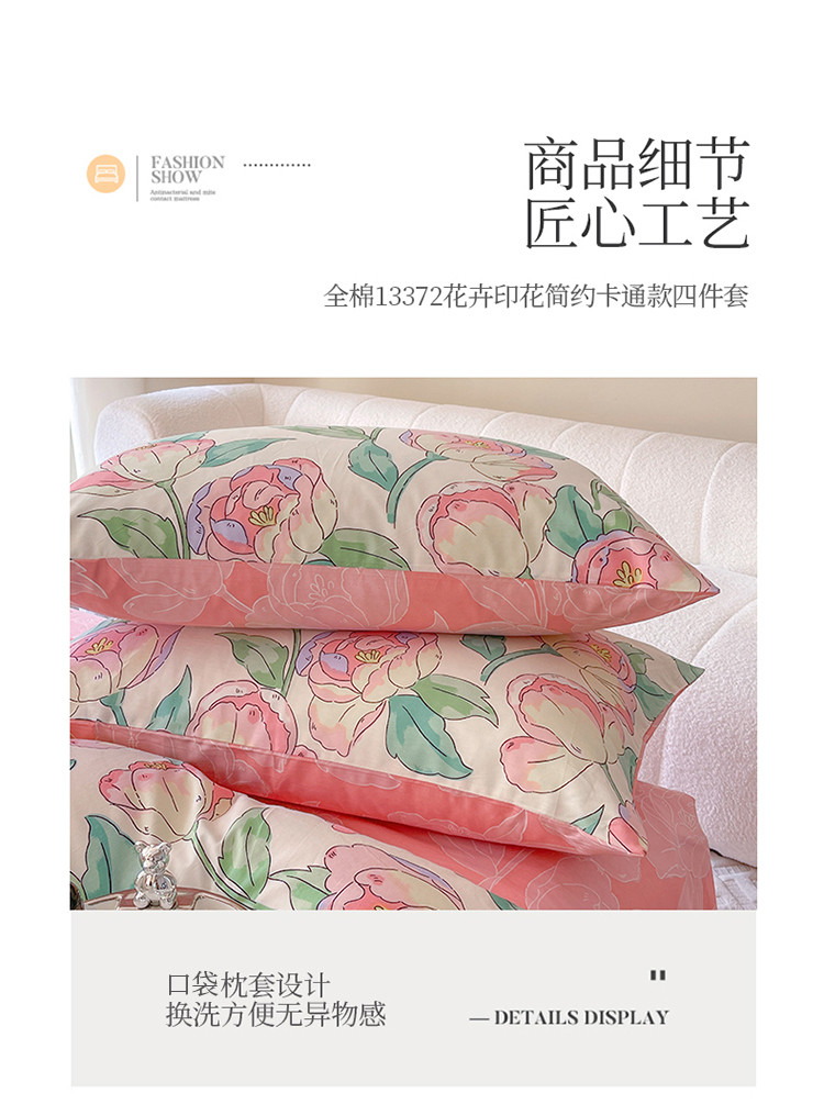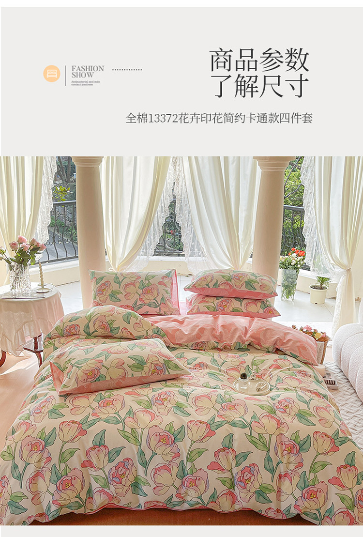 商品名称:星巴k家纺2023新款全棉13372花卉印花简约卡通款多规格四件套花影