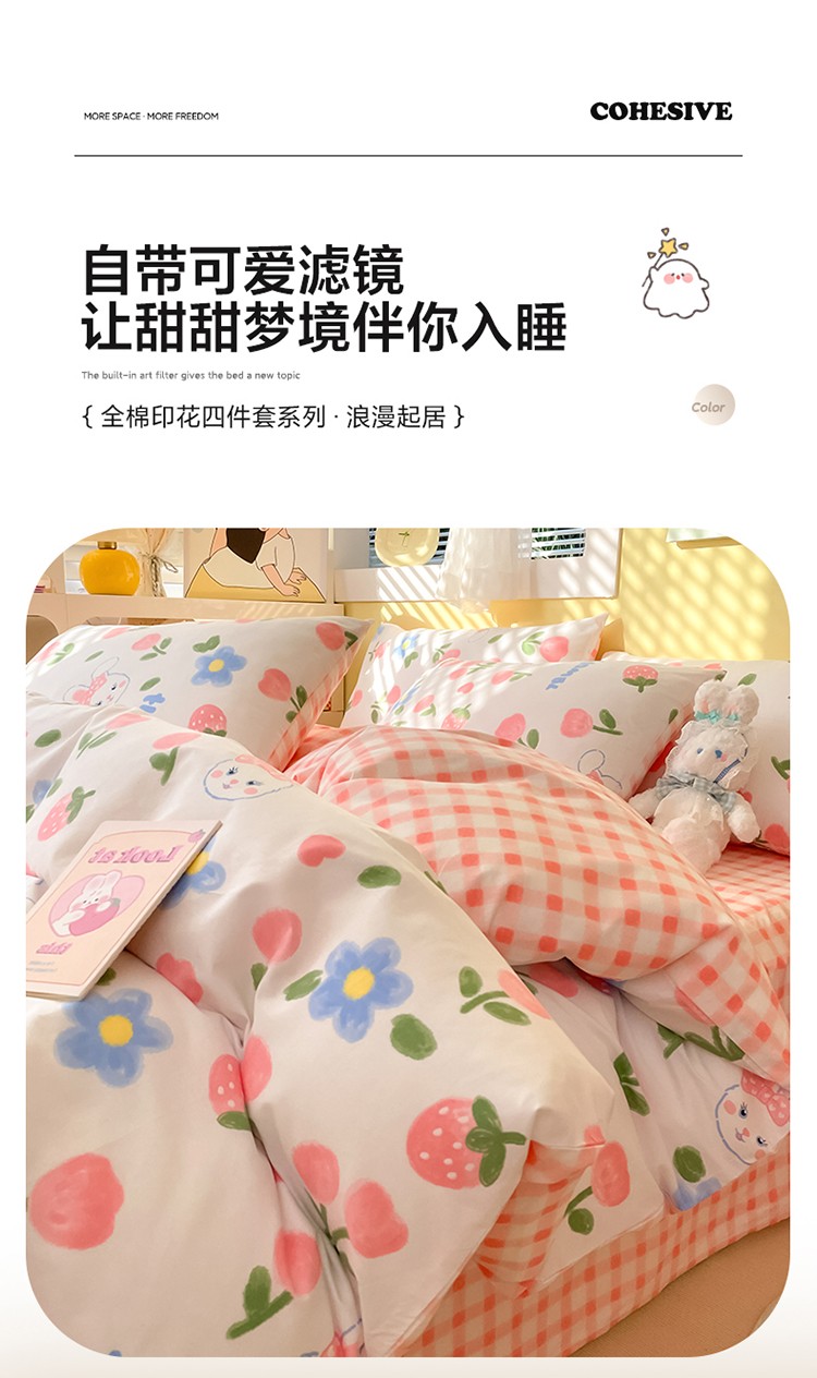 雅居纺 2023新款全棉13070小清新四件套 草莓兔