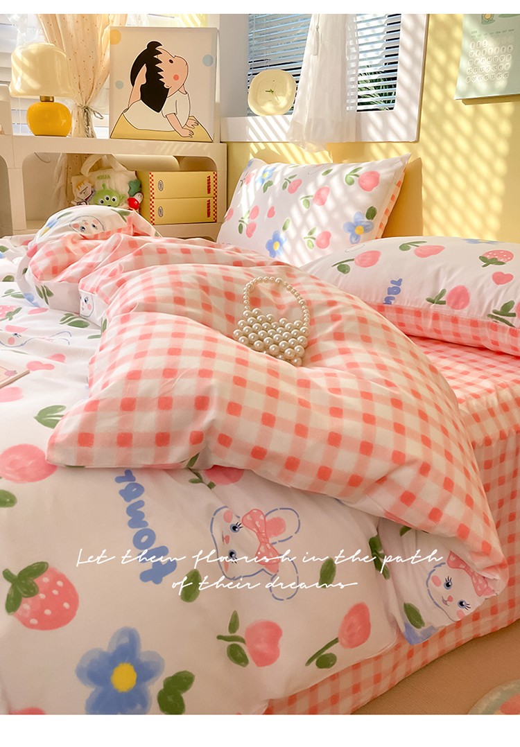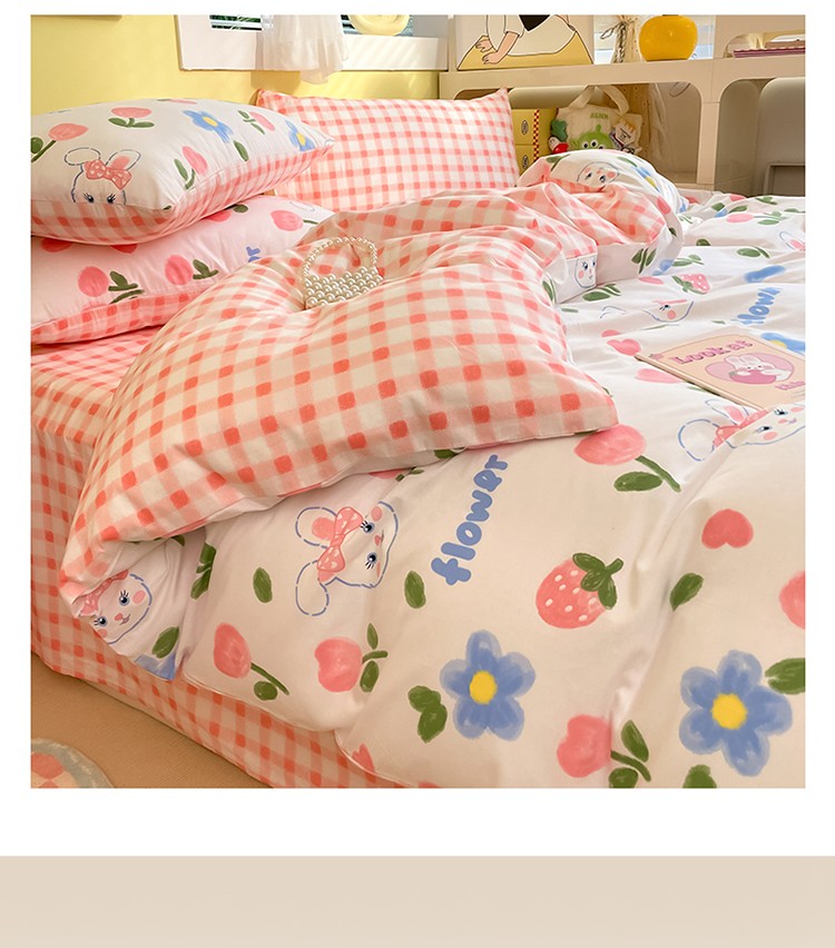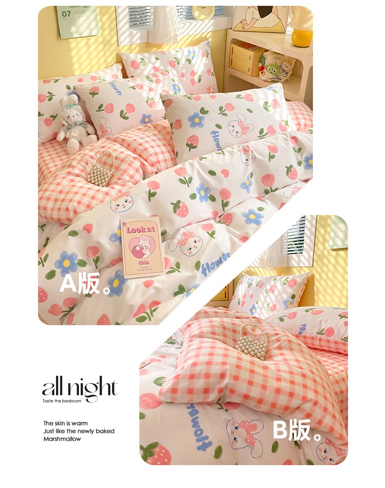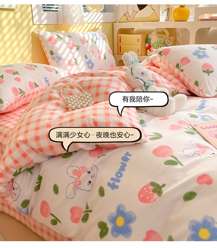 商品名称:雅居纺 2023新款全棉13070小清新四件套 草莓兔