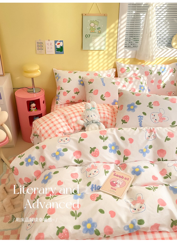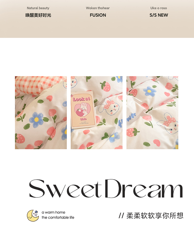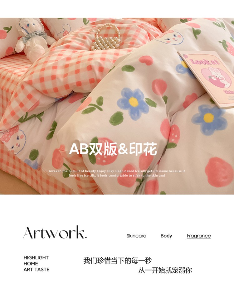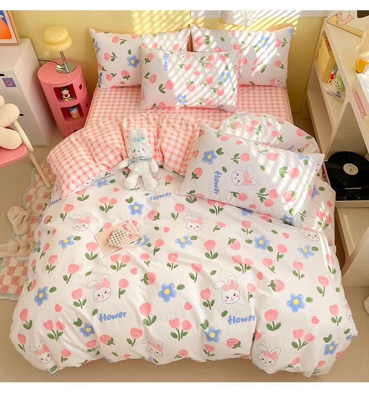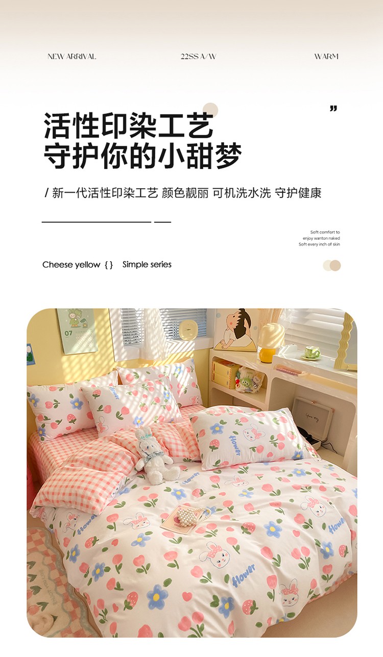 商品名称:雅居纺 2023新款全棉13070小清新四件套 草莓兔