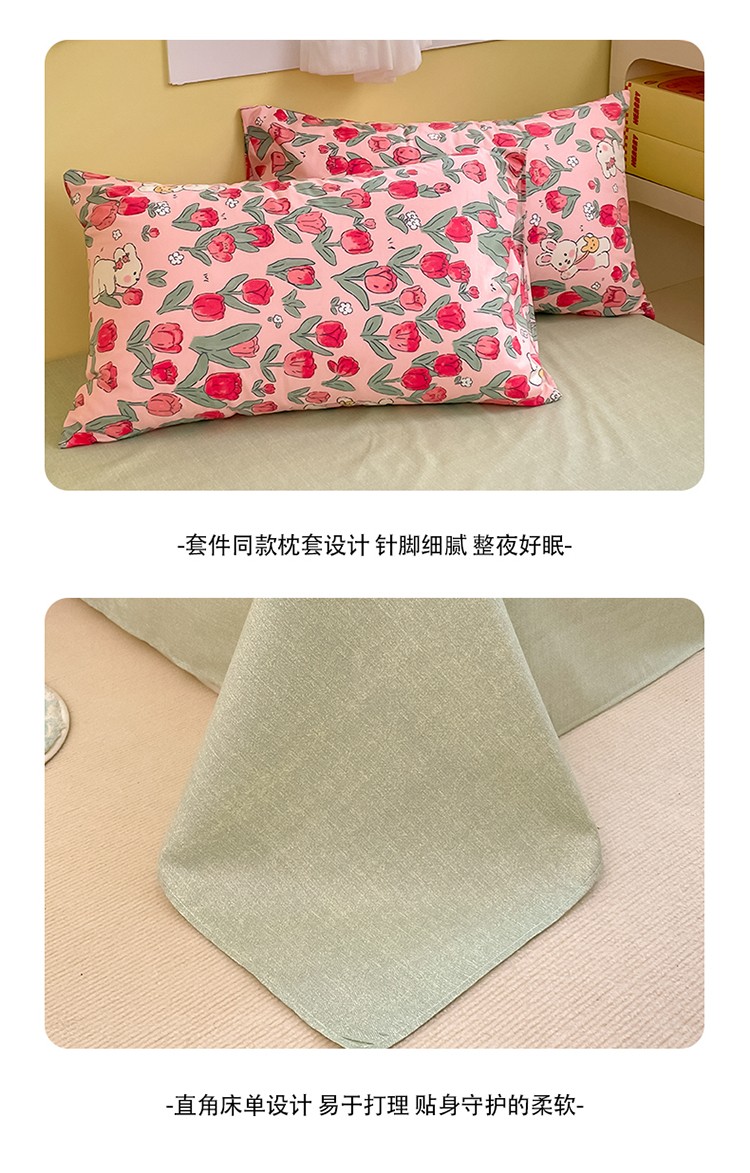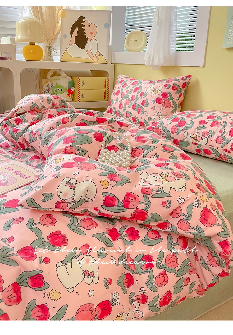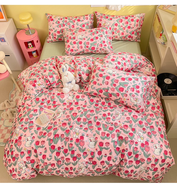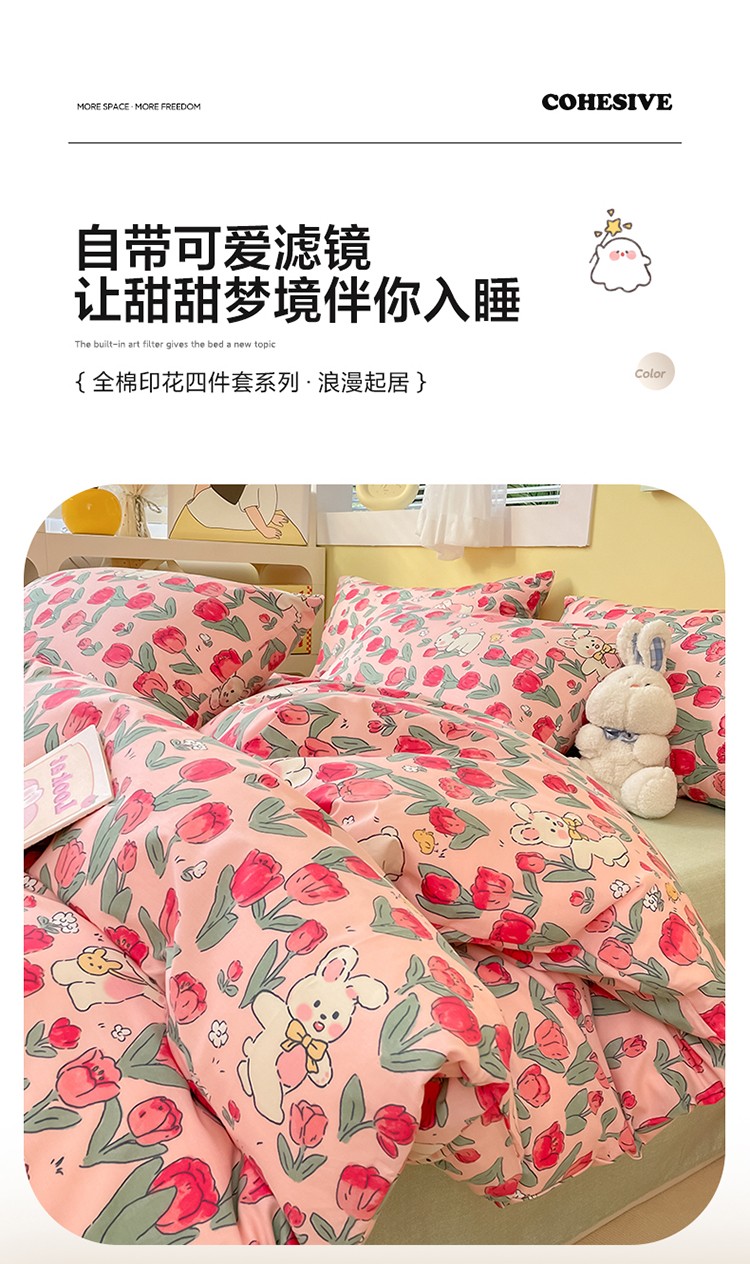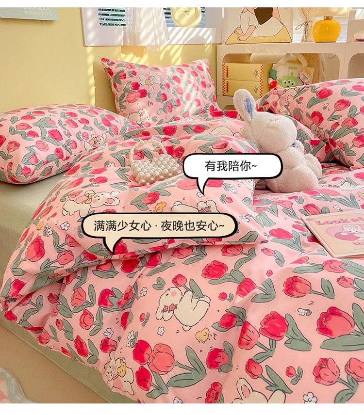雅居纺 2023新款全棉13070小清新四件套 小红花兔子