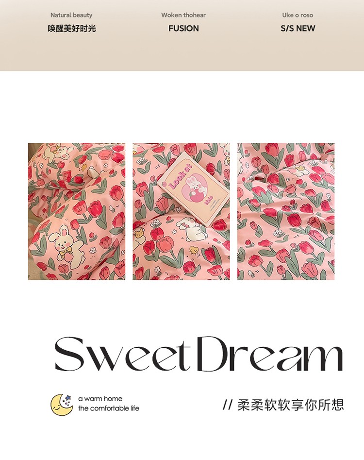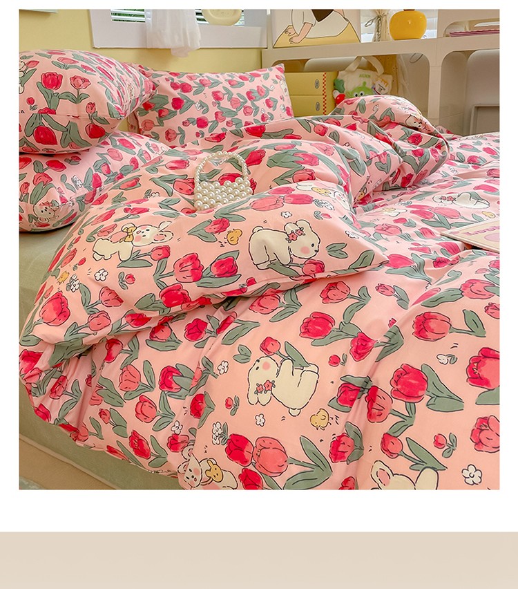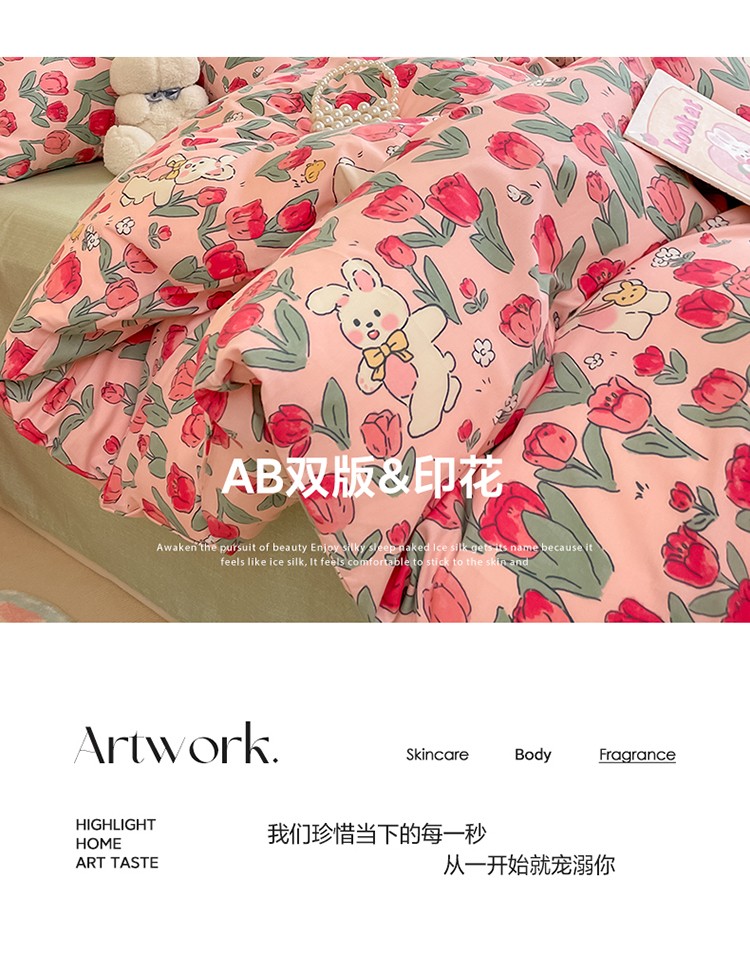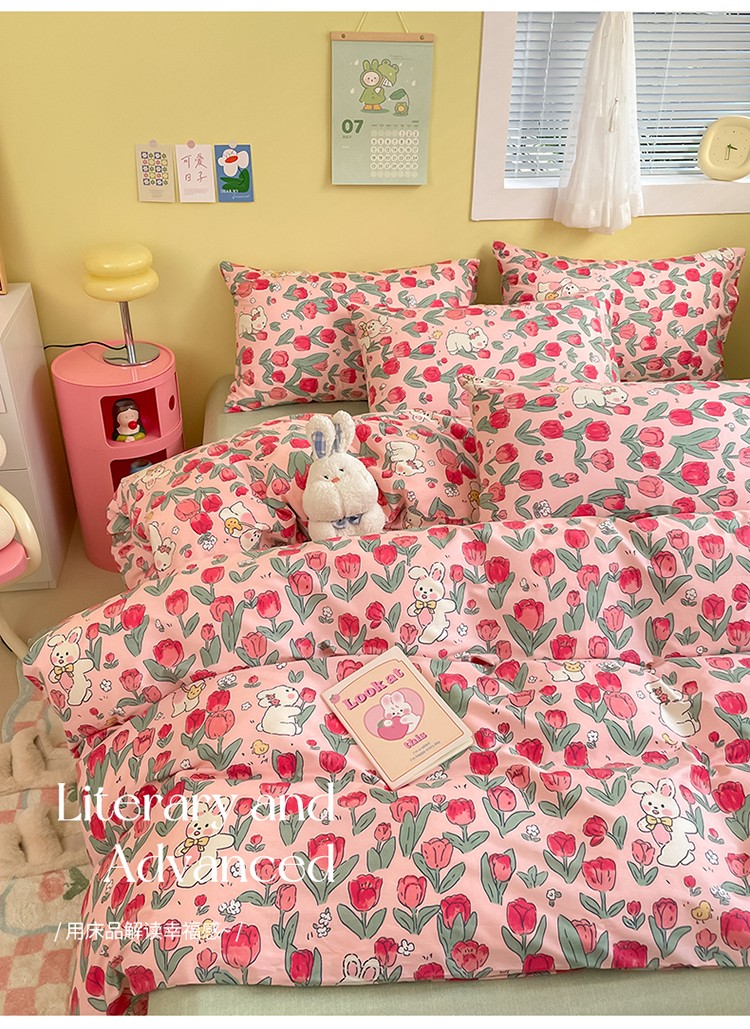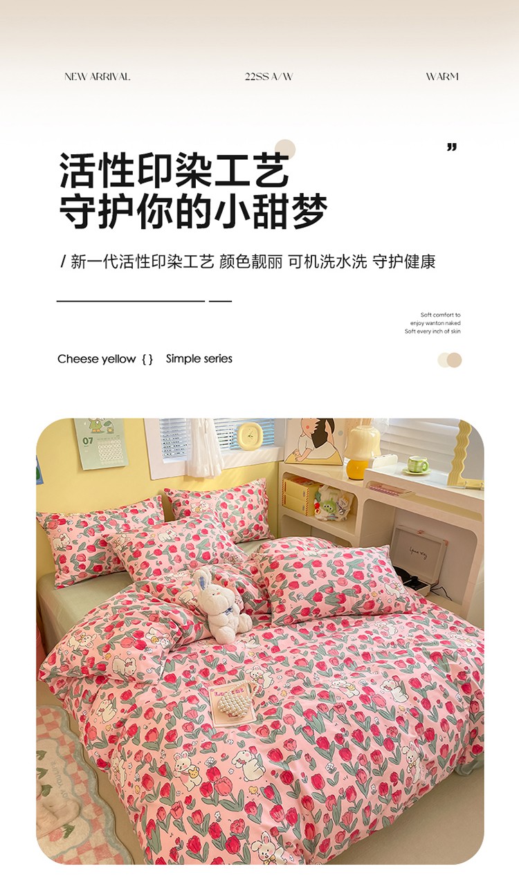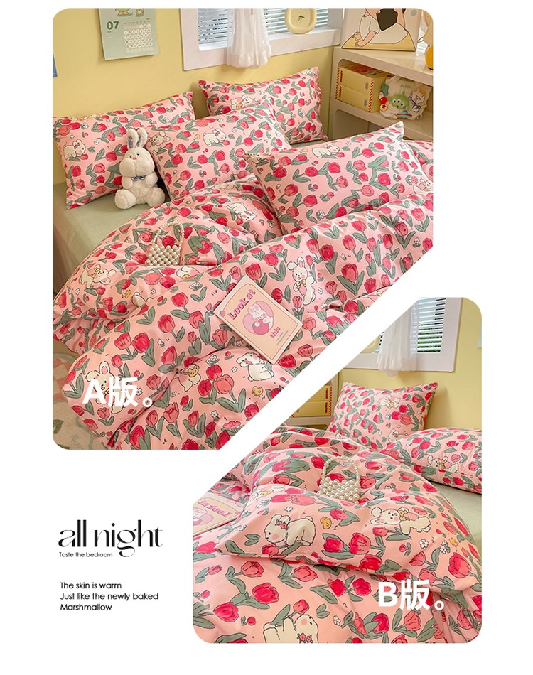 雅居纺 2023新款全棉13070小清新四件套 小红花兔子