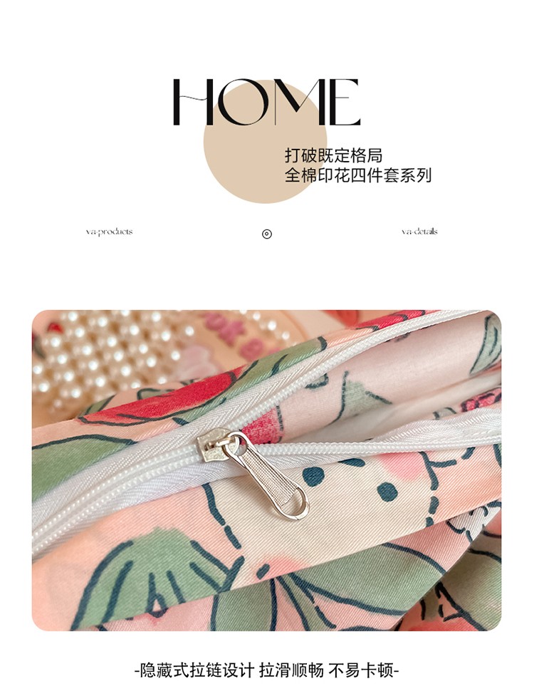 (总)雅居纺家纺 2022新款13070全棉印花四件套,波纹,多彩,简笔画,莓关系,奶油绿豹纹,倾心,数字