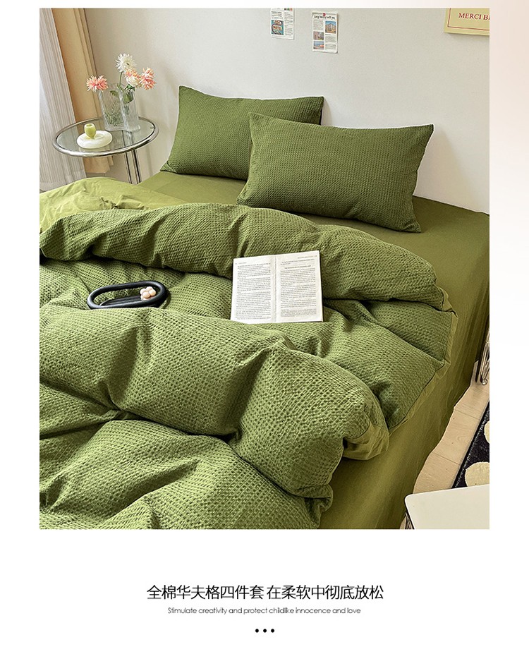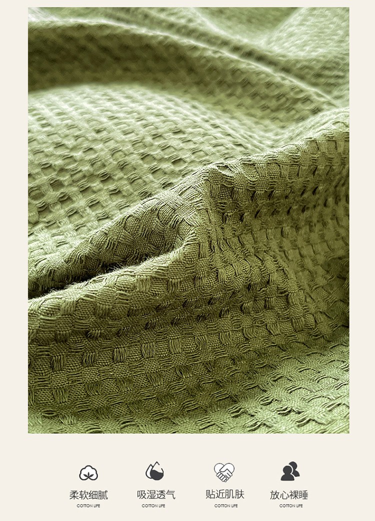 雅居纺 2023新款全棉华夫格四件套 华夫格深绿