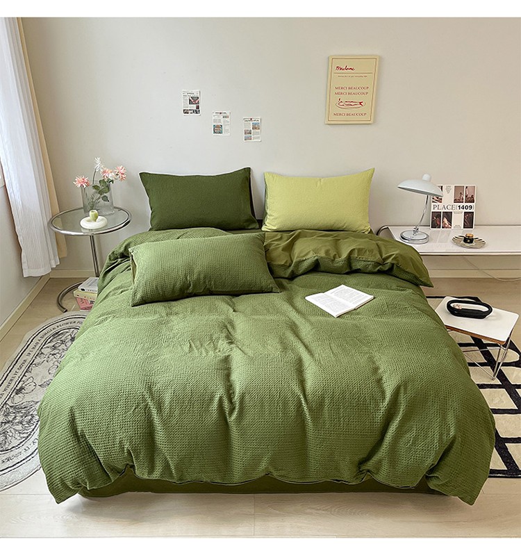 商品名称:雅居纺 2023新款全棉华夫格四件套 华夫格深绿