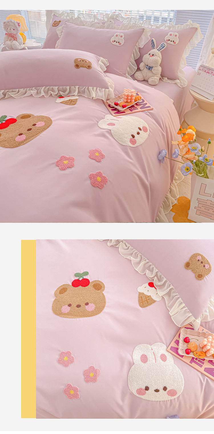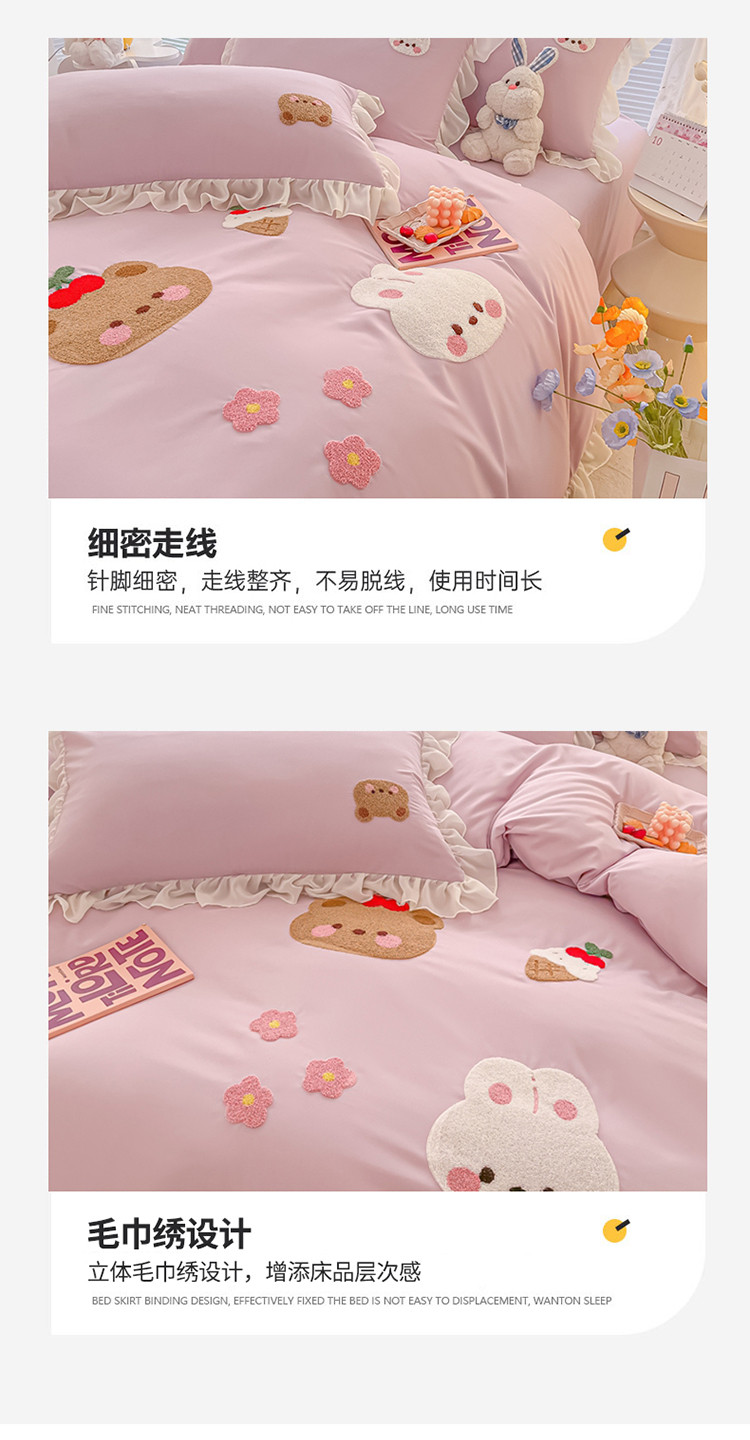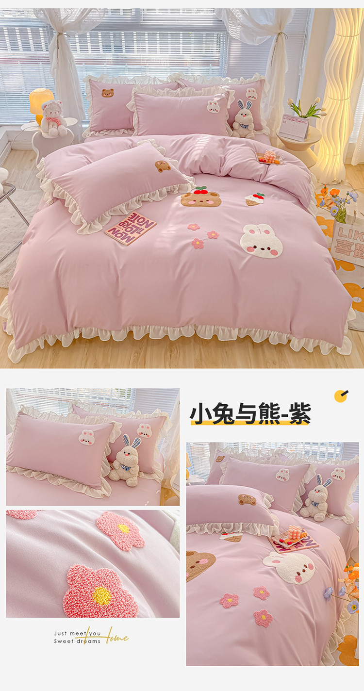 当前位置: 91家纺网 > 商品网购 > 床品套件 > 四件套 > 毛巾绣四件套 > 我心 2023新款毛巾绣四件套-萌兔系列 小兔与熊-紫