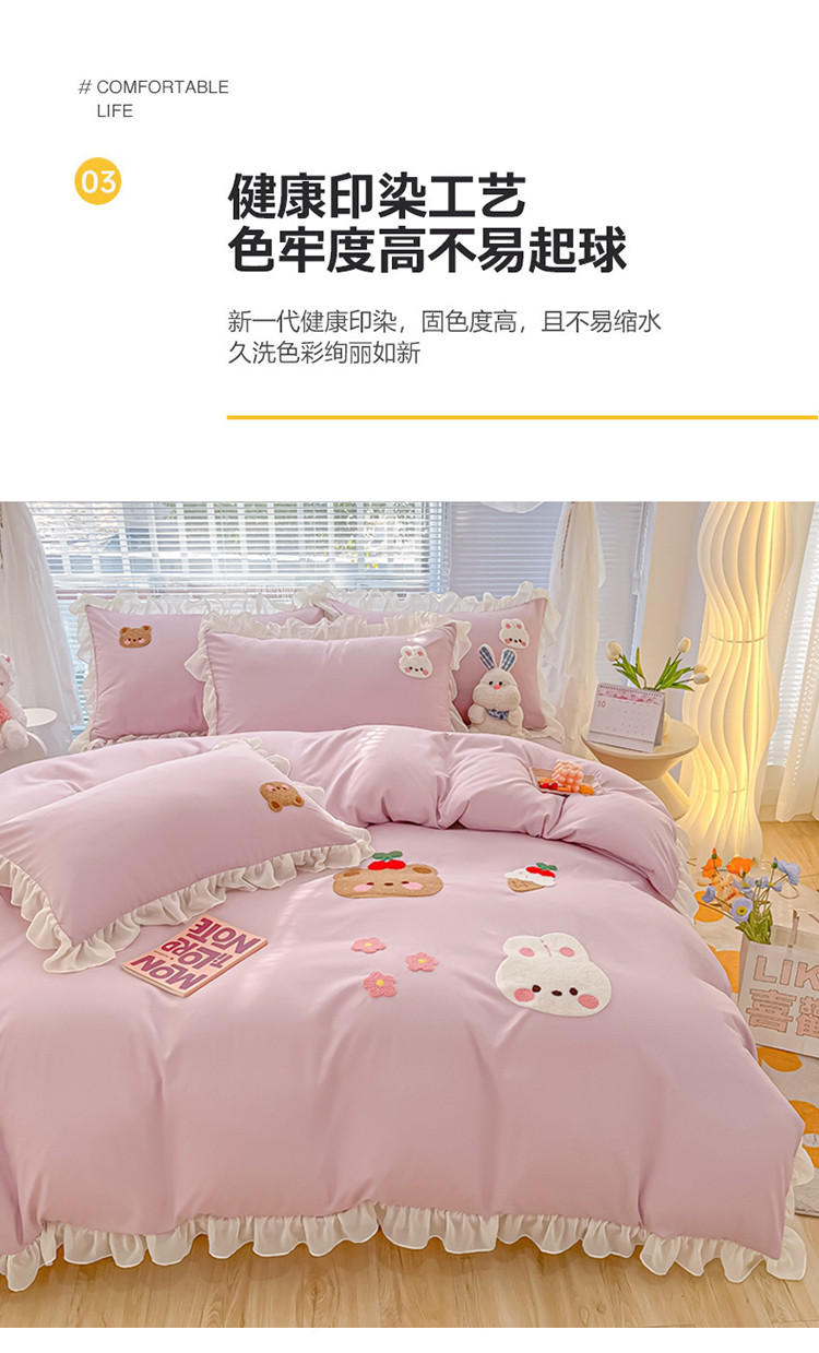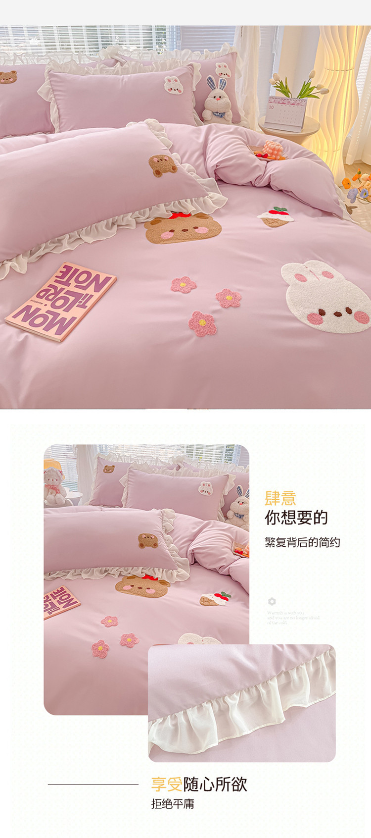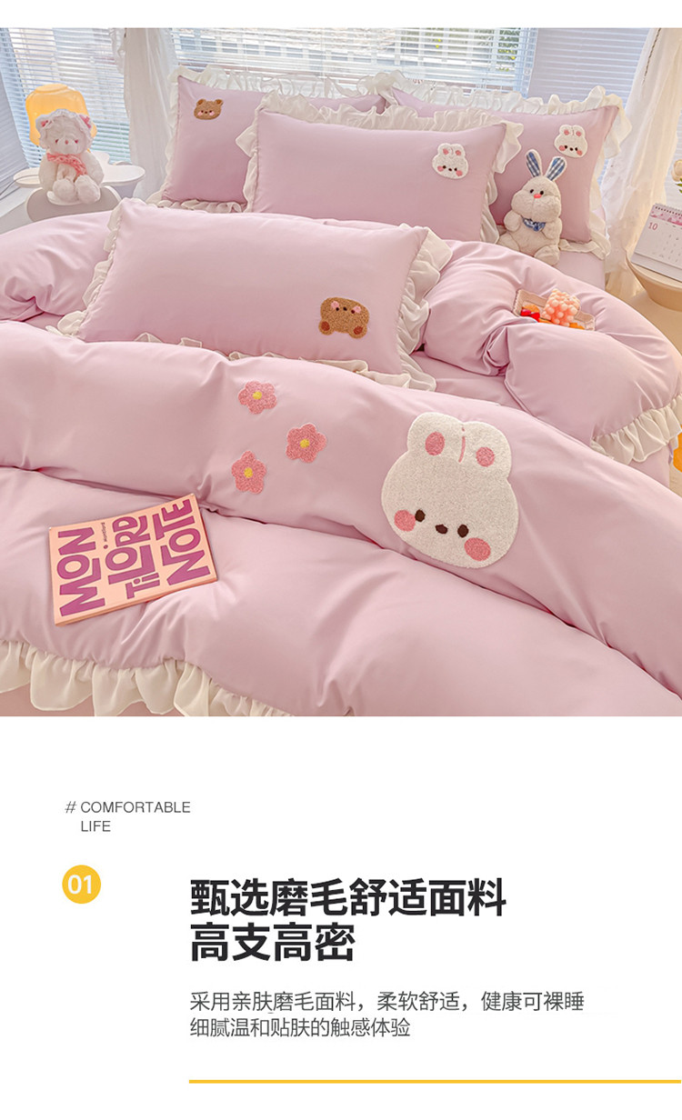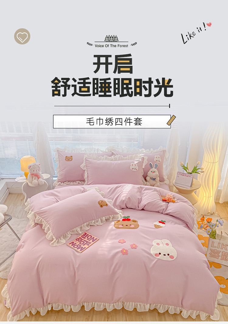 当前位置: 91家纺网 > 商品网购 > 床品套件 > 四件套 > 毛巾绣四件套 > 我心 2023新款毛巾绣四件套-萌兔系列 小兔与熊-紫