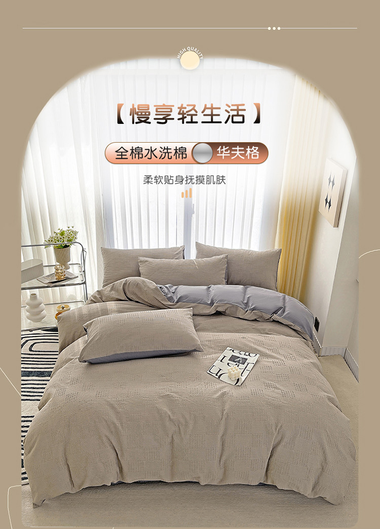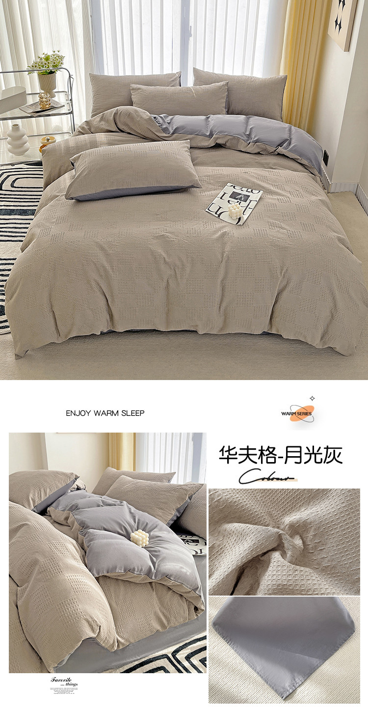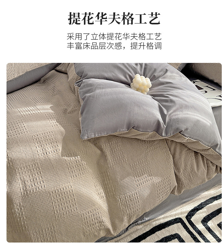 商品名称:娜娜 2023新款全棉水洗棉华夫格四件套 华夫格-月光灰