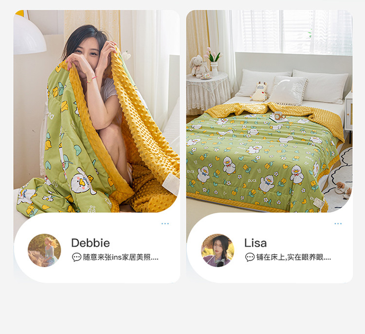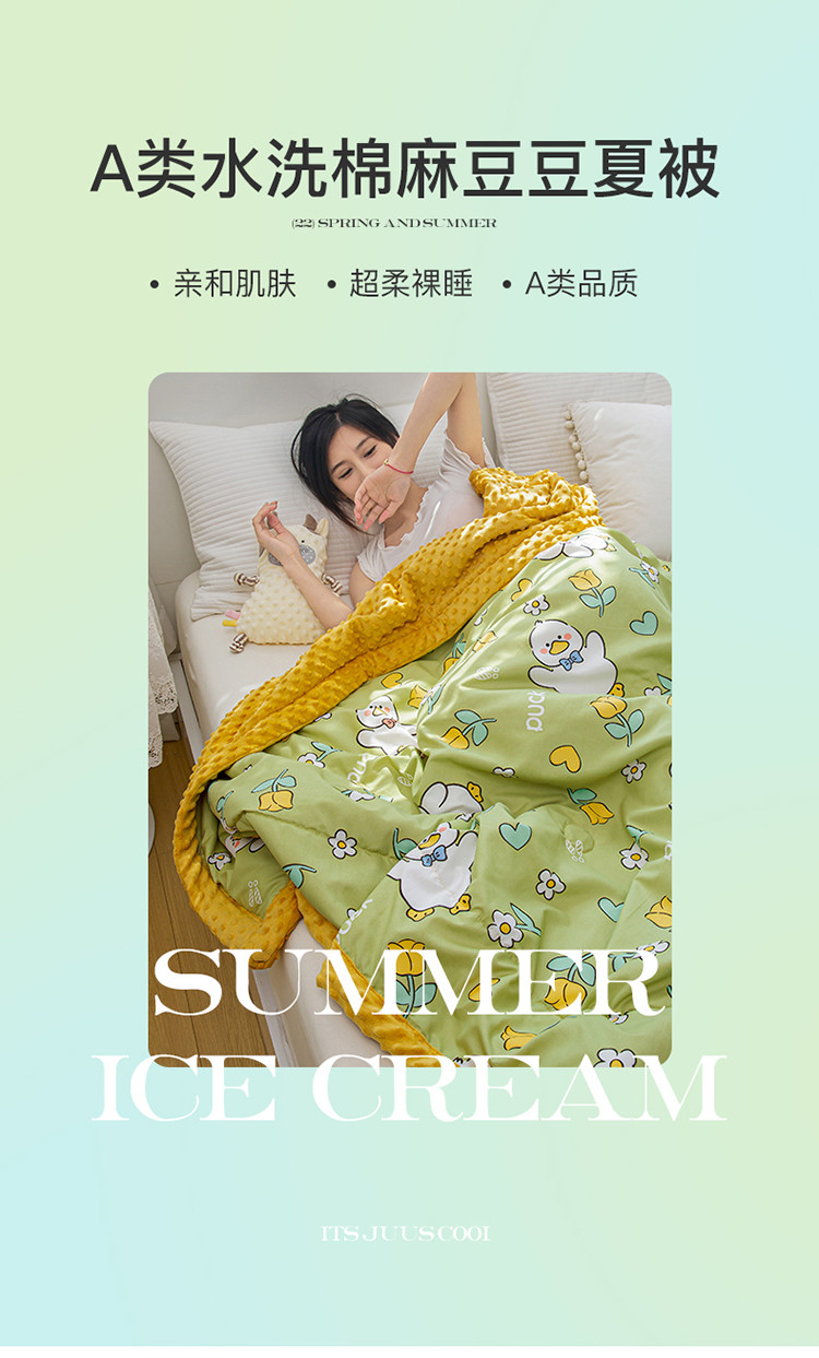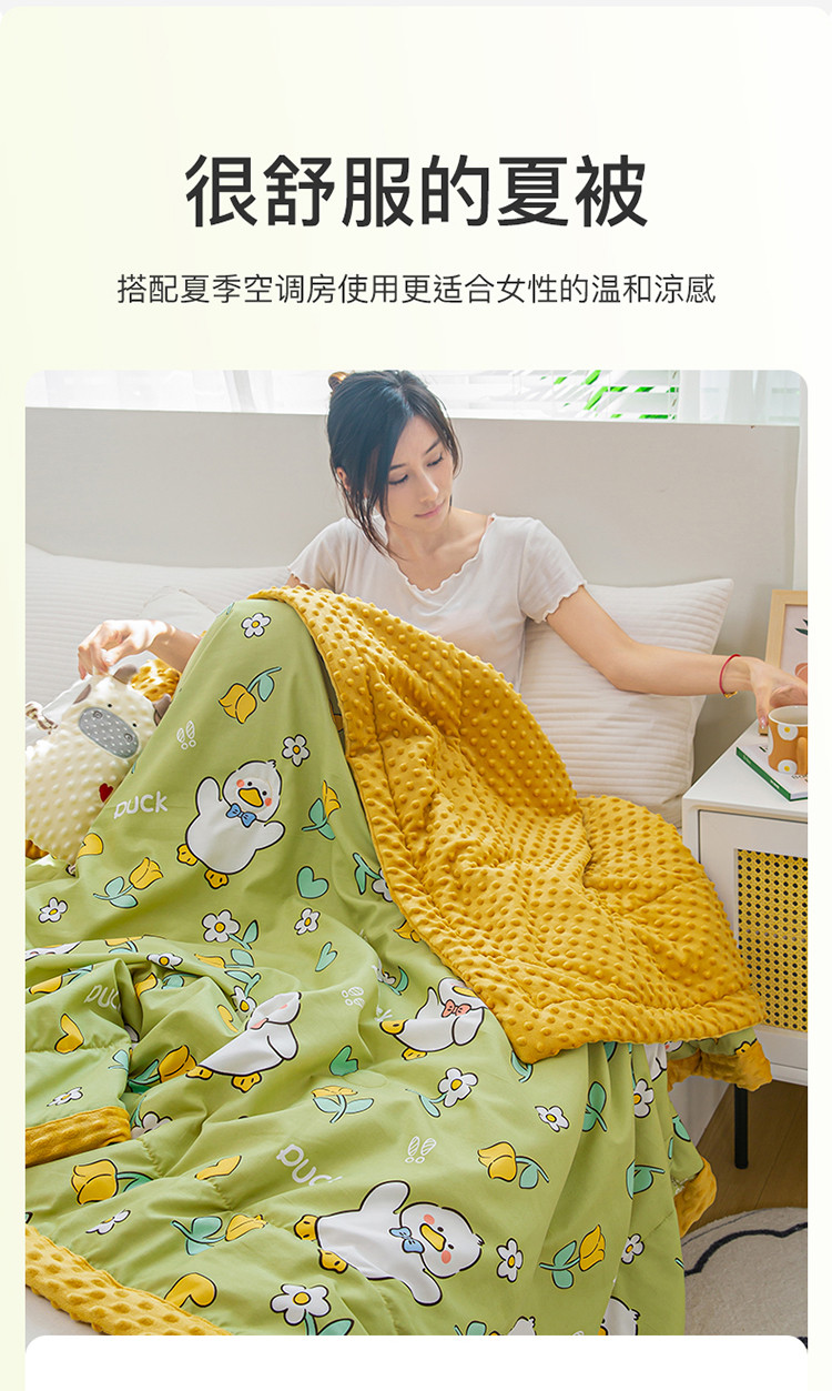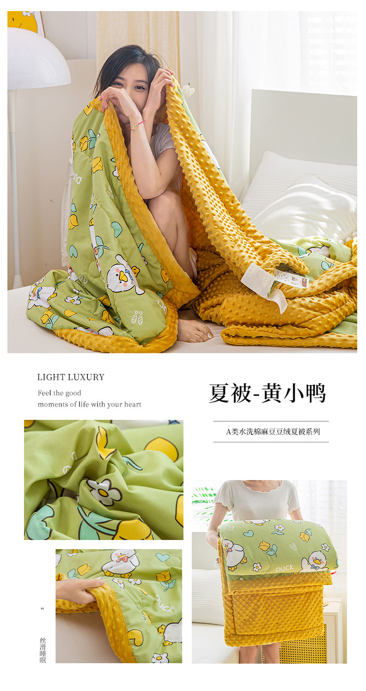 商品名称:欢乐季 2025新款A类水洗棉麻卡通款豆豆被-夏被 夏被-黄小鸭