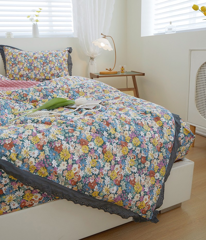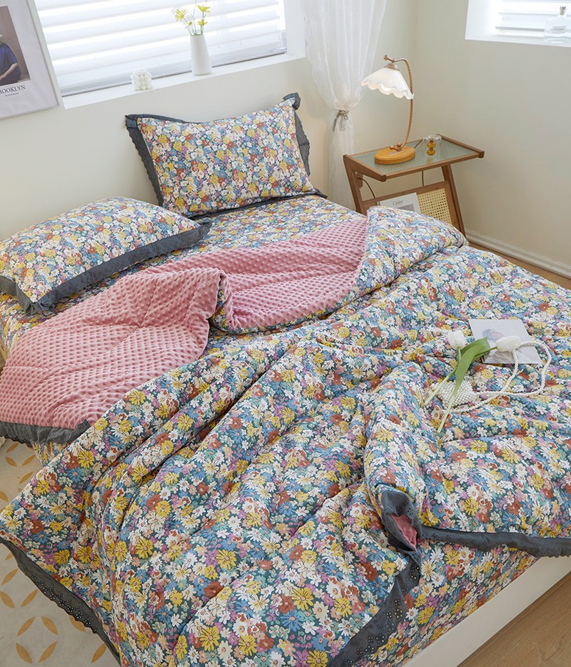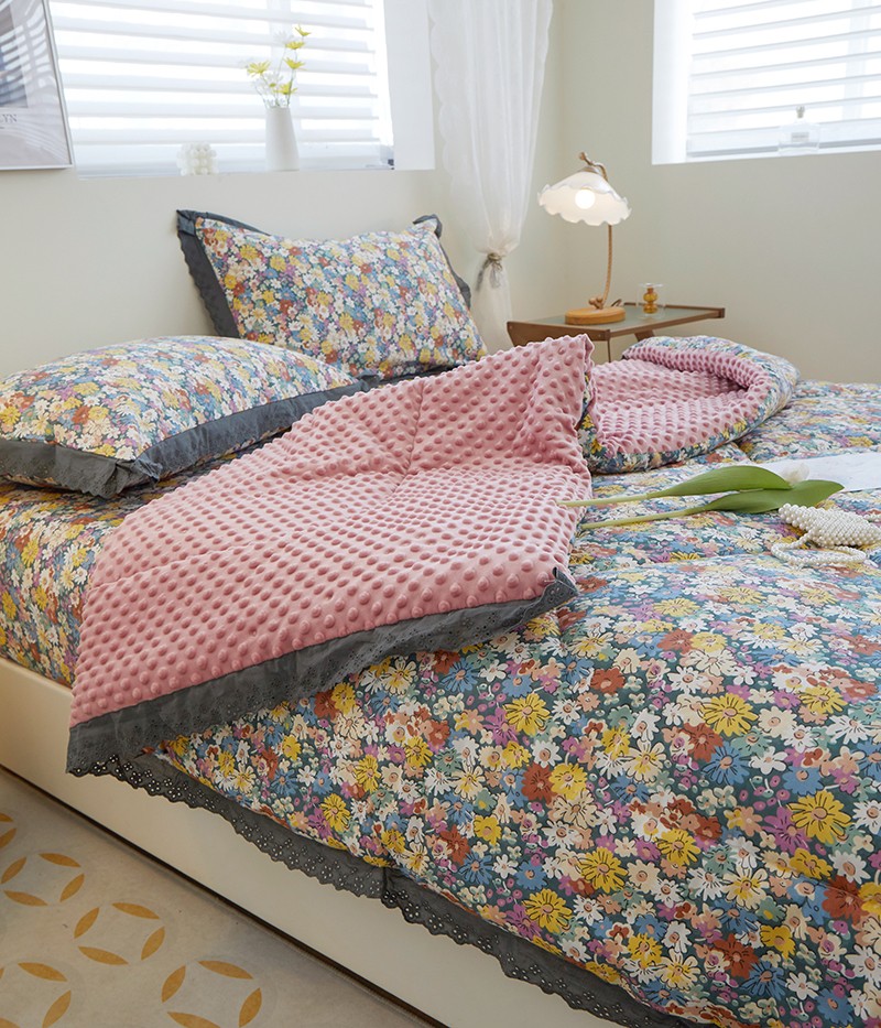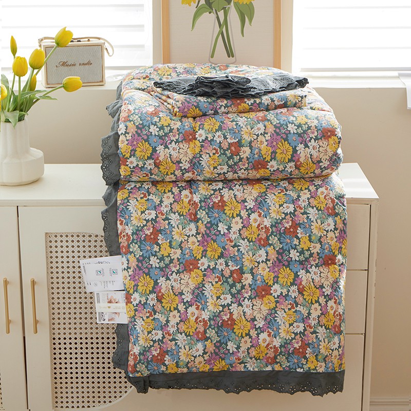 • 91家纺网 家纺一手货源 找家纺 一米阳光 2023新款纯棉蕾丝豆豆被被子被芯 南笙