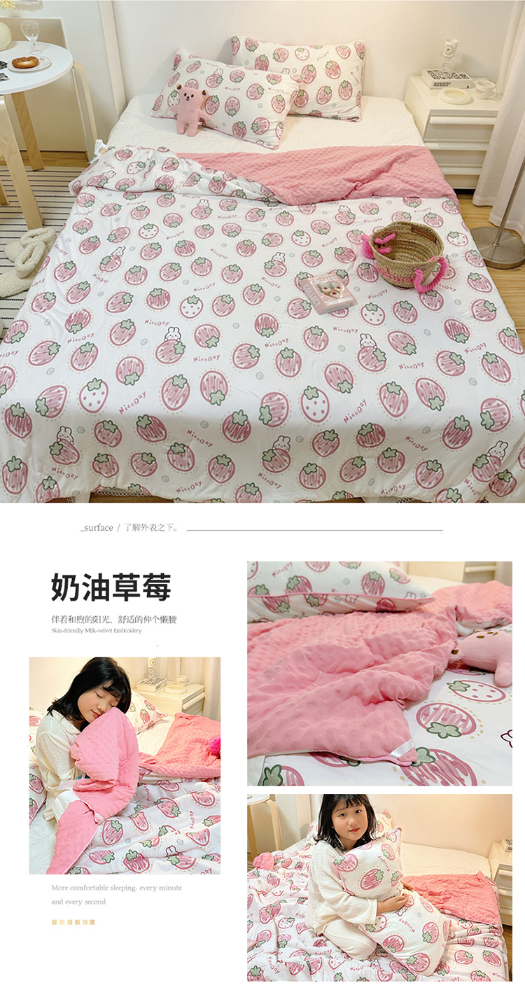 商品名称:有货2023爆款春夏夏凉被小清新春秋被卡通针织棉豆豆被 奶油草莓