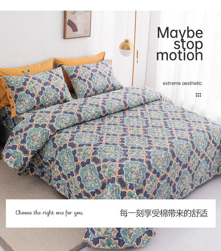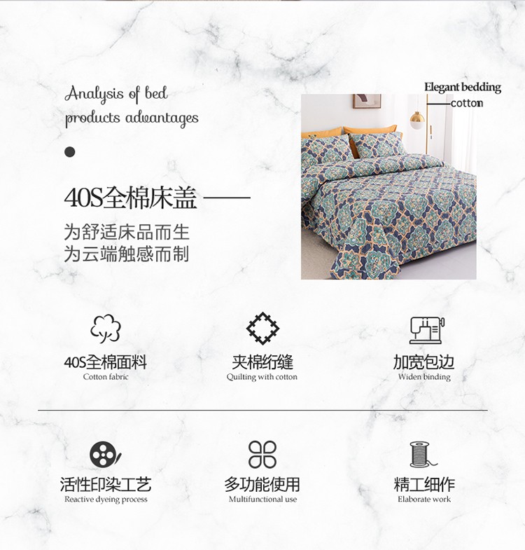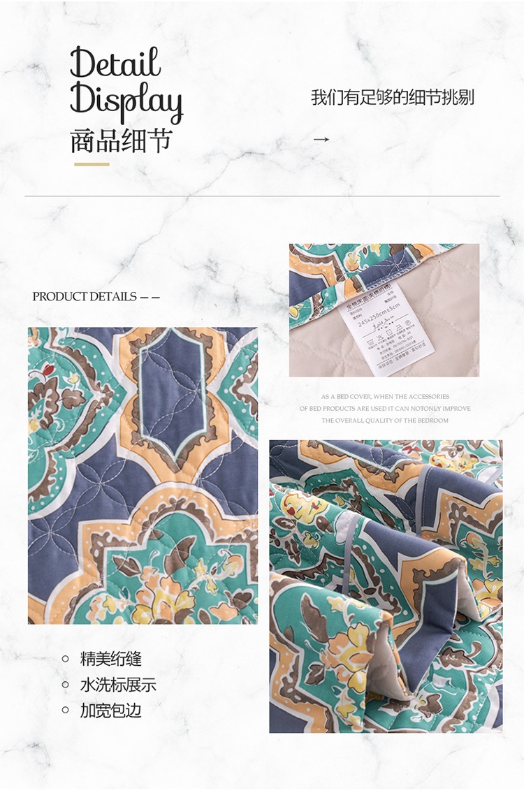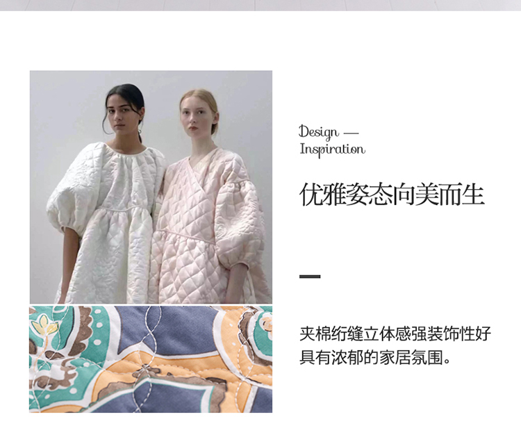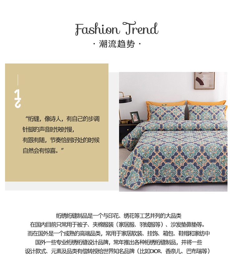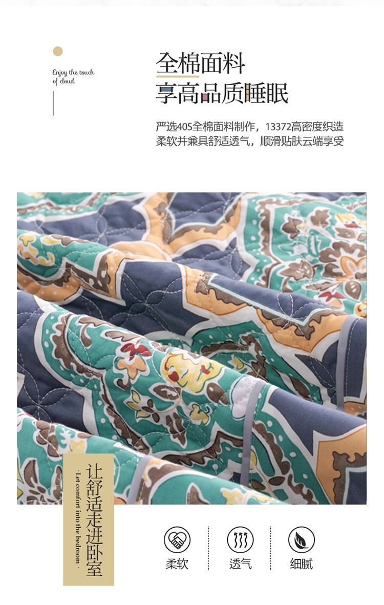 商品名称:优乐家纺 2023新款全棉印花绗绣系列2 时光印记-蓝