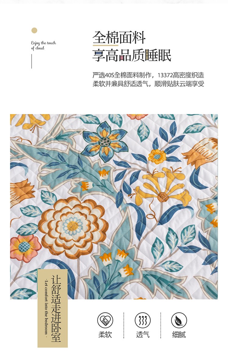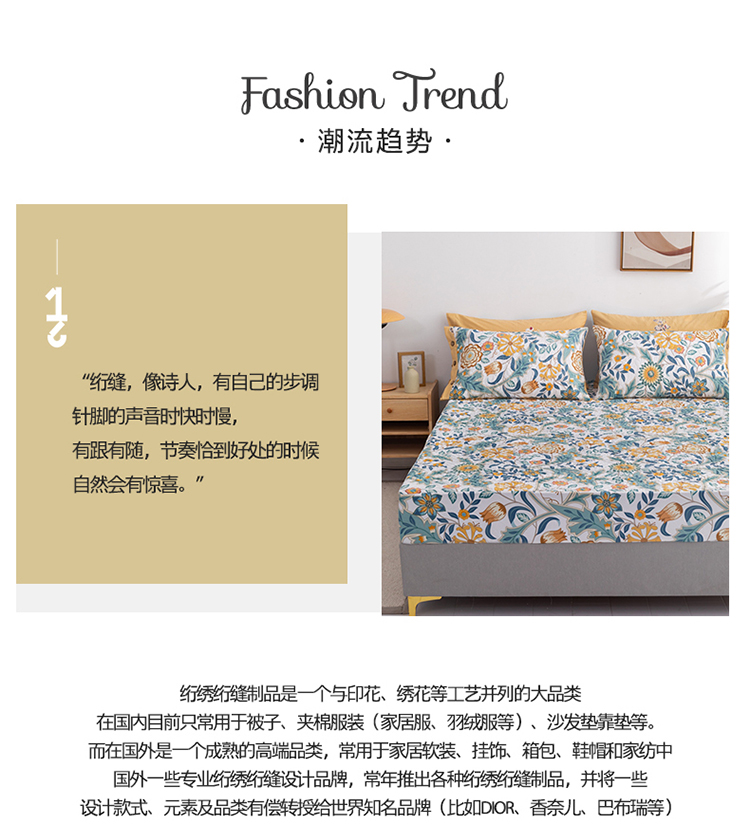 • 91家纺网 家纺一手货源 找家纺 优乐家纺 2023新款全棉印花绗绣系列2 单床笠 秋季物语