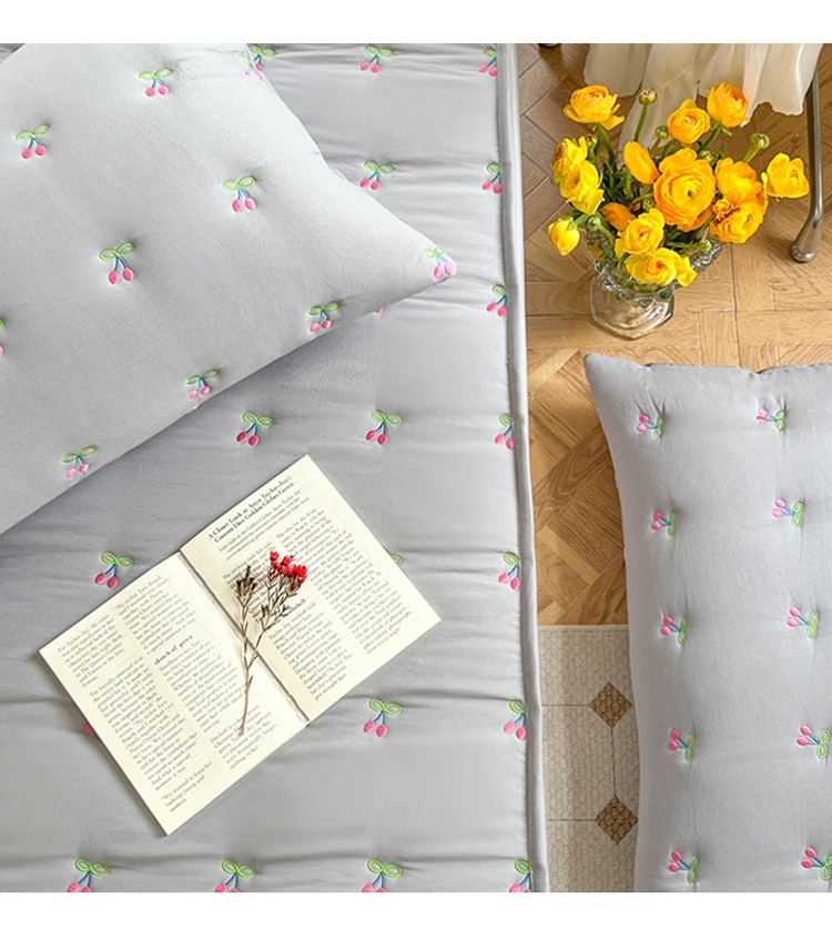 尊康家纺(原磊科) 2024亲肤奶昔棉夹棉床笠樱桃系列 樱桃-宾利蓝