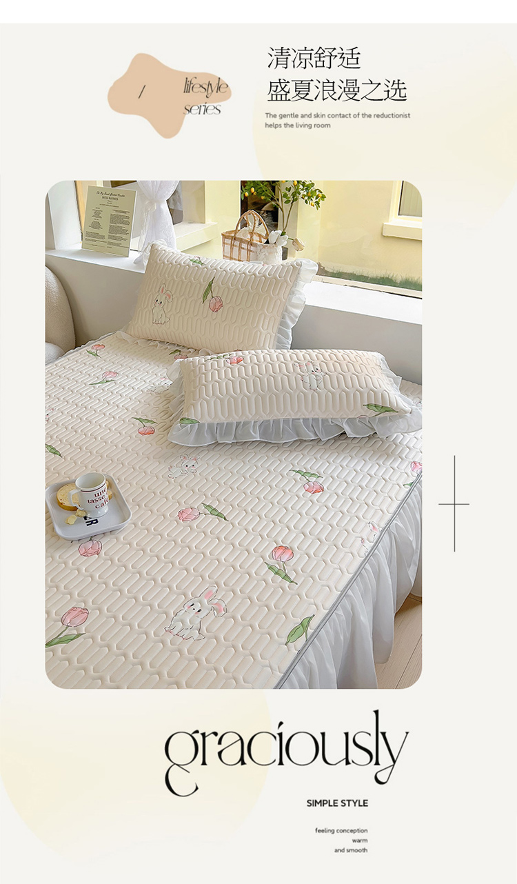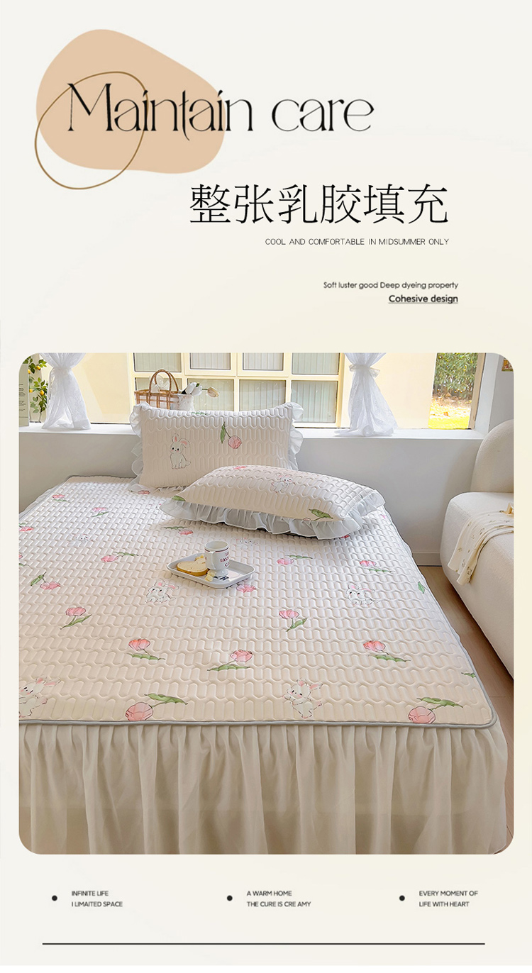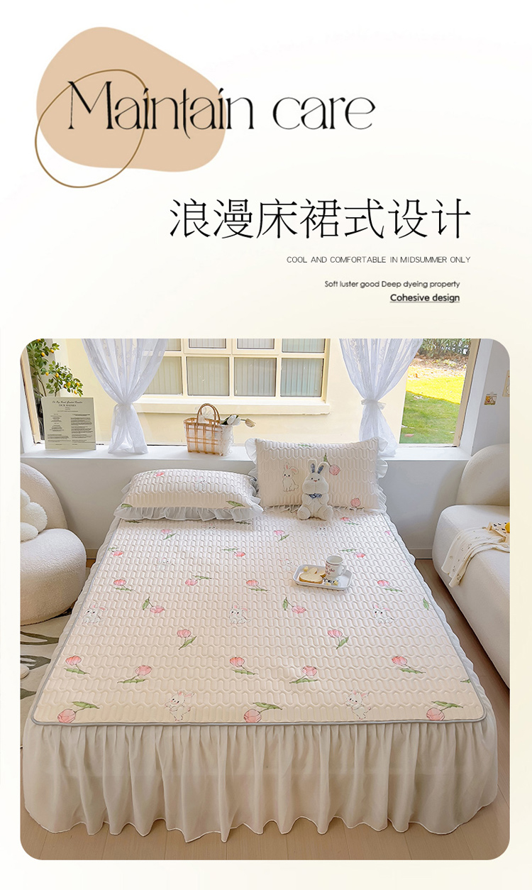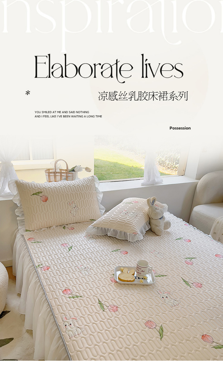 柒月家居2023新款乳胶床裙款凉席和夏被 床裙款-郁金香兔