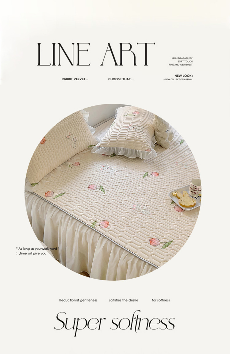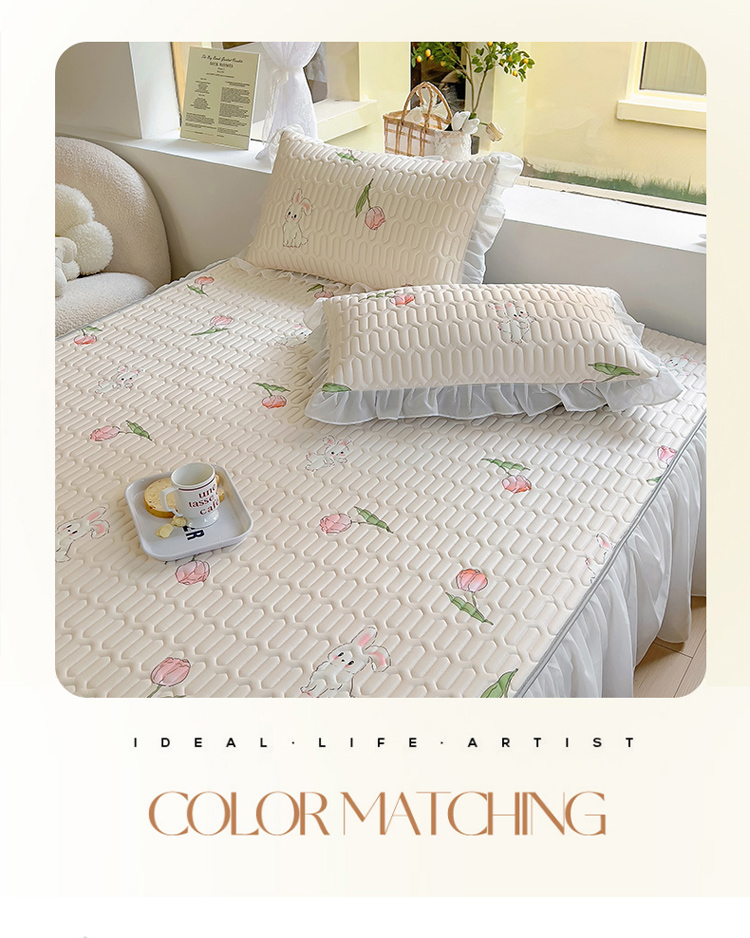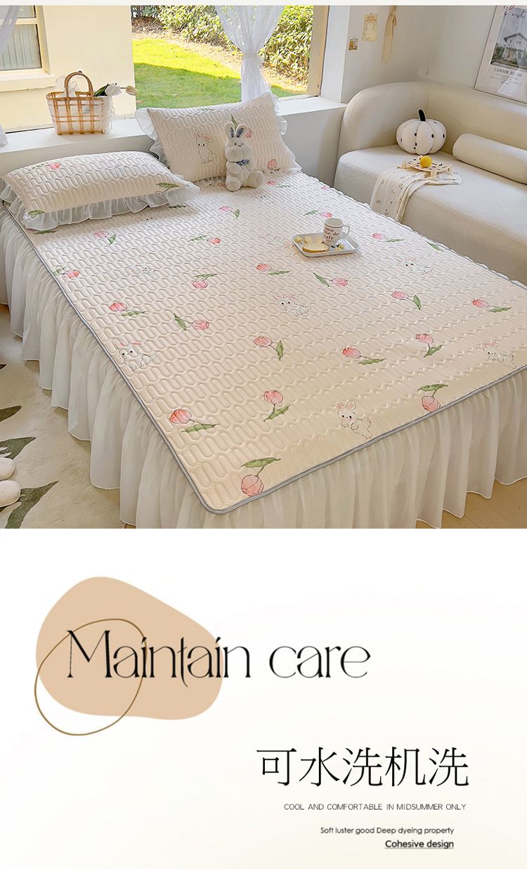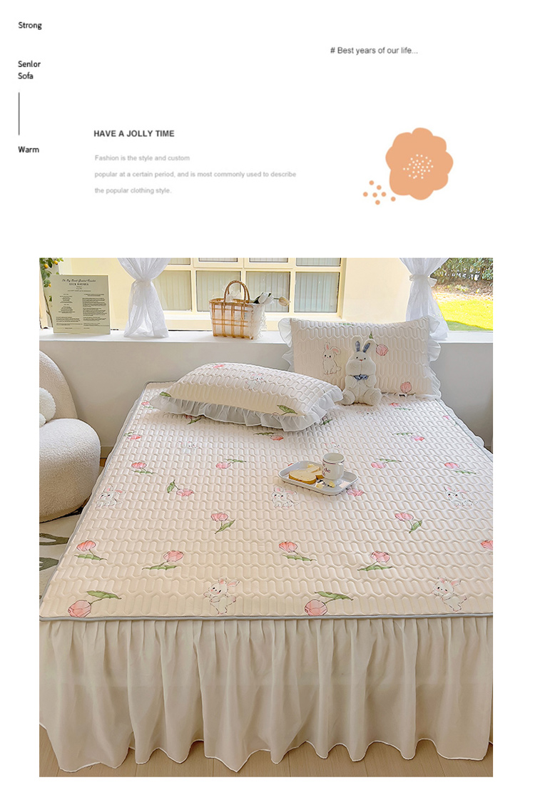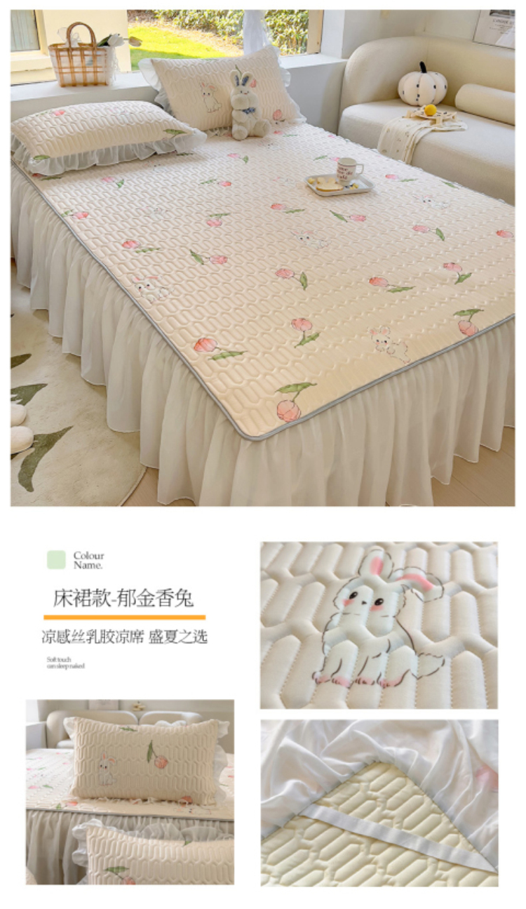 柒月家居2023新款乳胶床裙款凉席和夏被 床裙款-郁金香兔