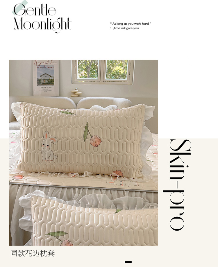 商品名称:柒月家居2023新款乳胶床裙款凉席和夏被 床裙款-郁金香兔