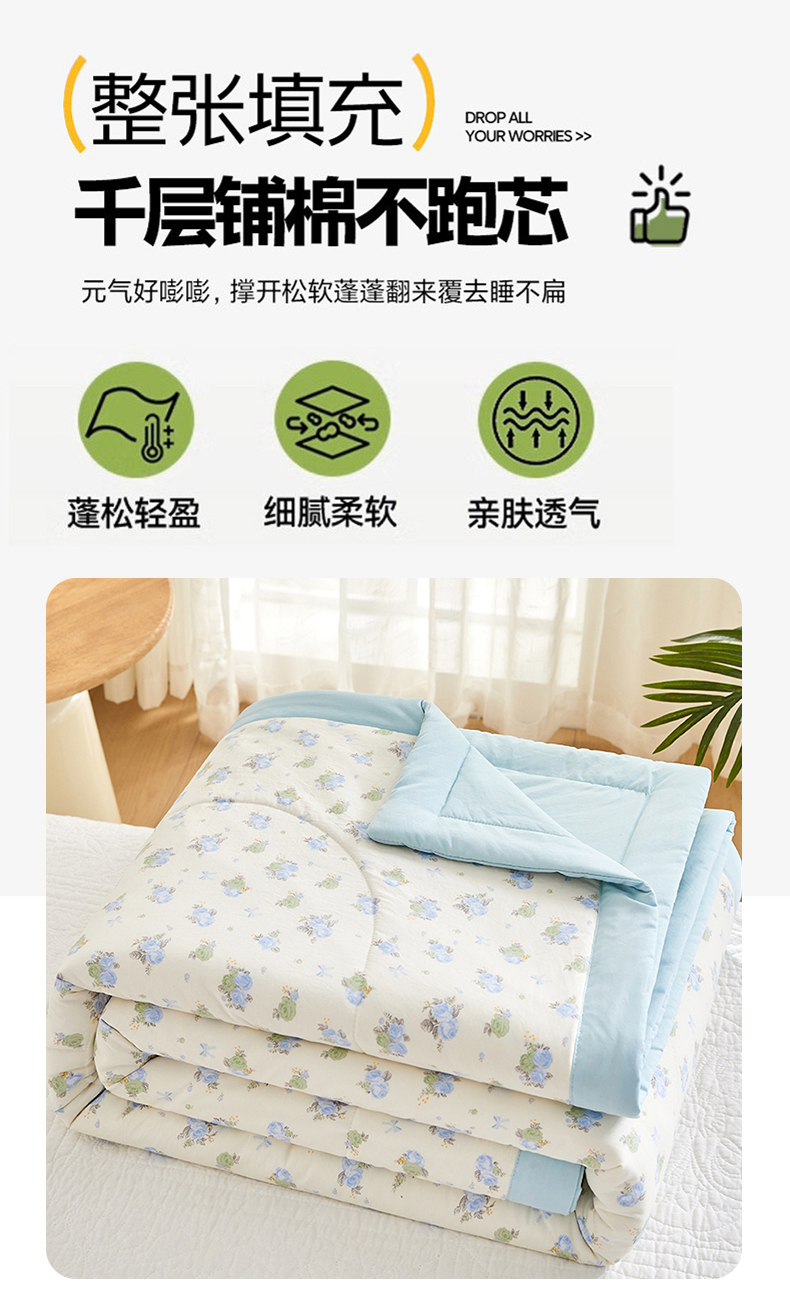 商品名称:(总)海洋家纺 2026新款100%新疆棉花印花夏被亲肤仿棉夏凉被纯手包边空调被薄被子