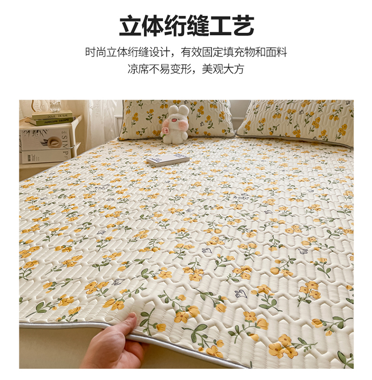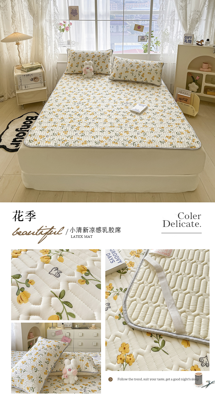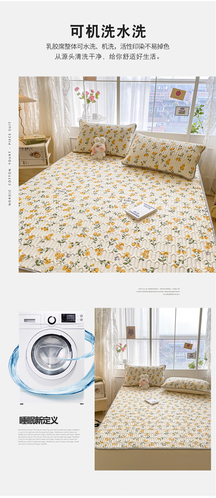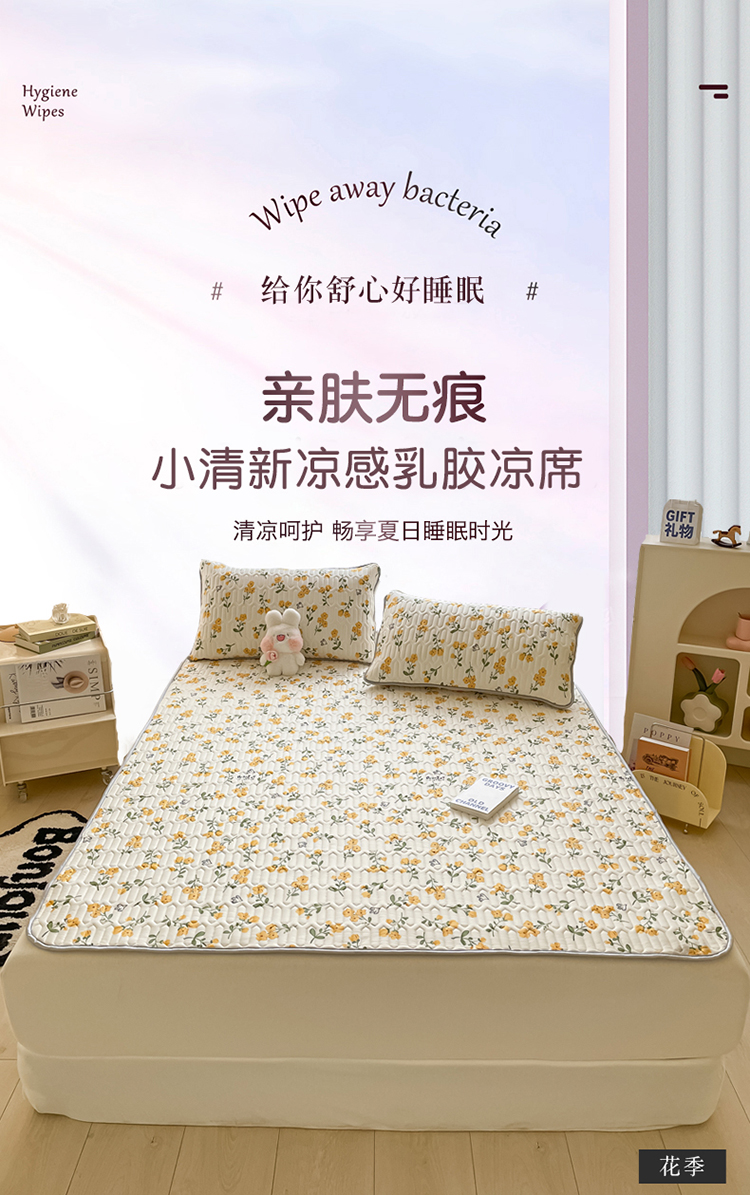 商品名称:金爱家 2023新款小清新凉感丝乳胶凉席三件套 花季