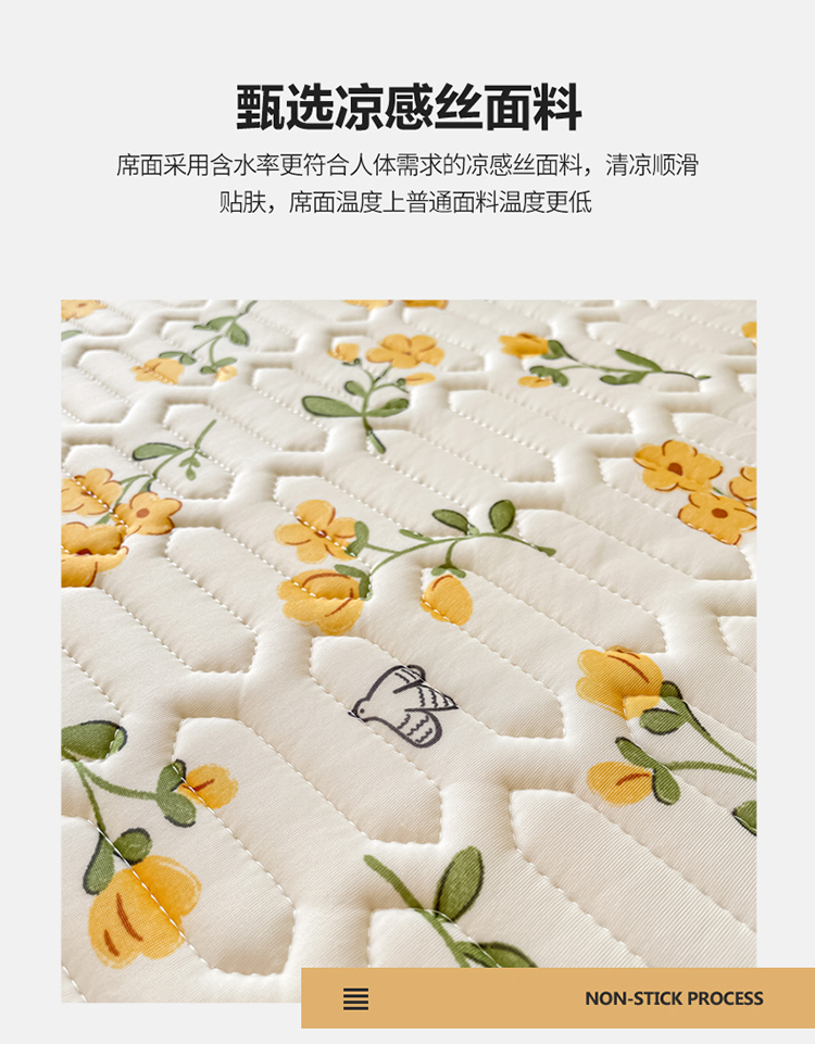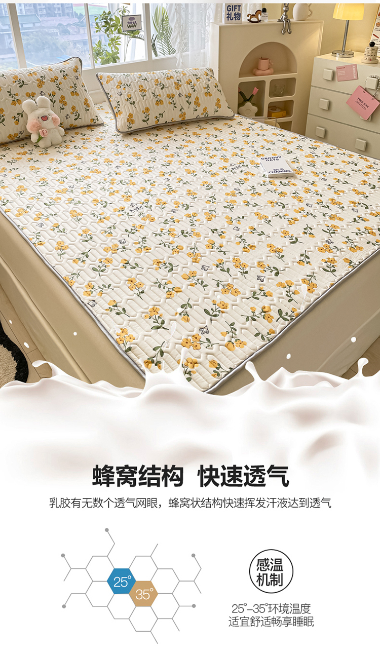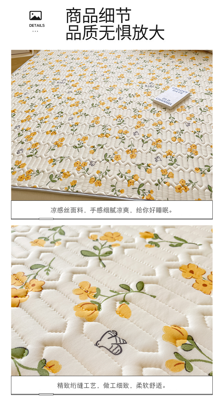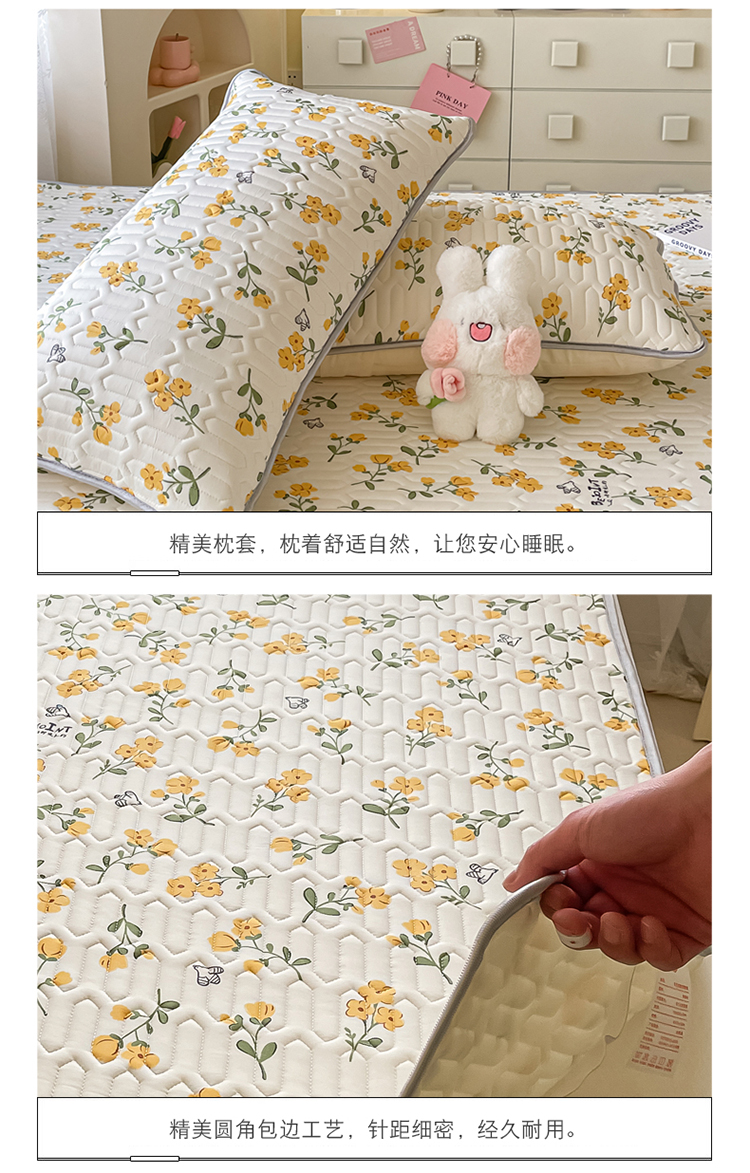 商品名称:金爱家 2023新款小清新凉感丝乳胶凉席三件套 花季