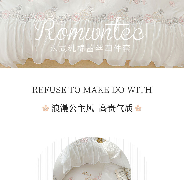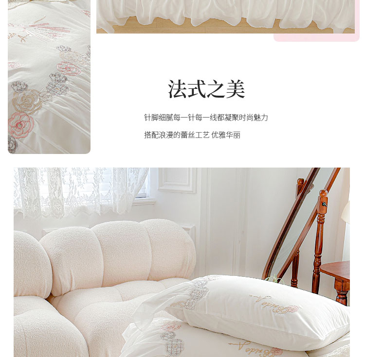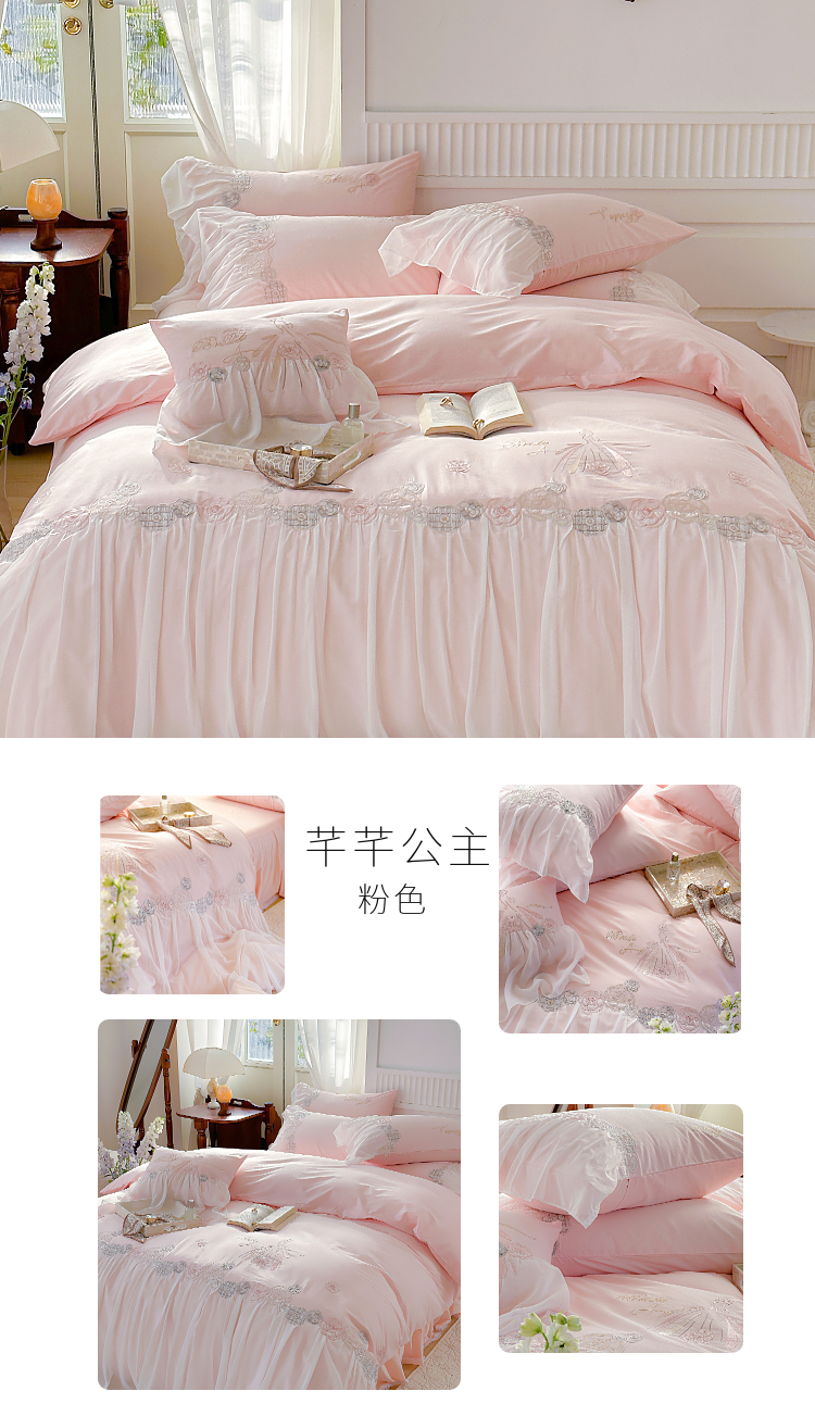 当前位置: 91家纺网 > 商品网购 > 床品套件 > 四件套 > 全棉普通四件套 > (总)亲亲公主 2025新款全棉蕾丝公主风四件套-芊芊公主