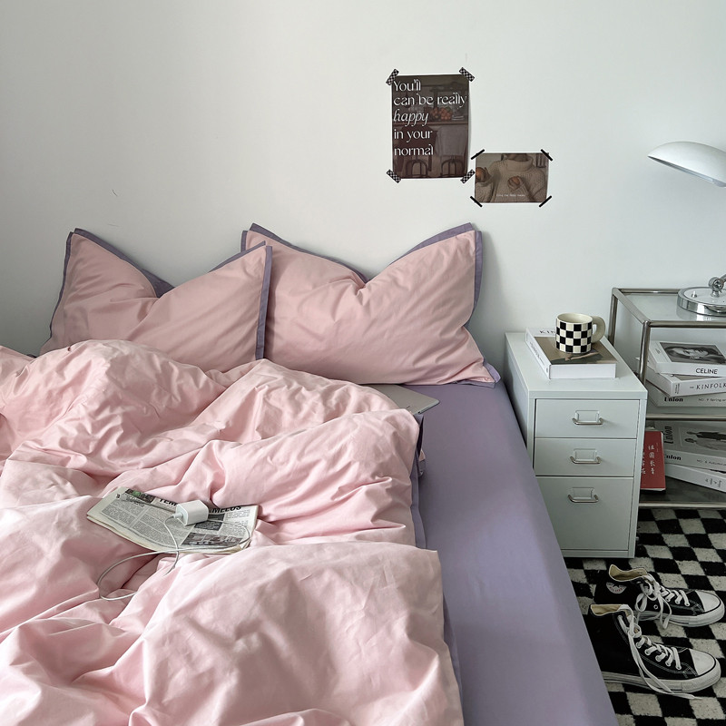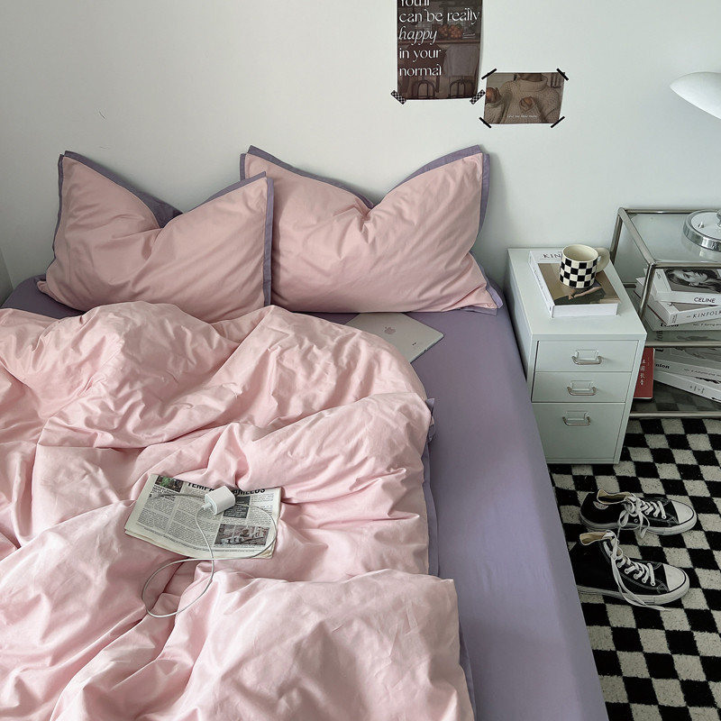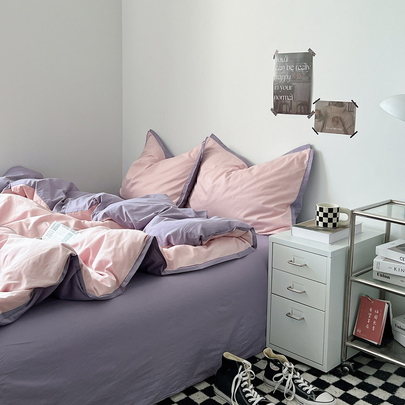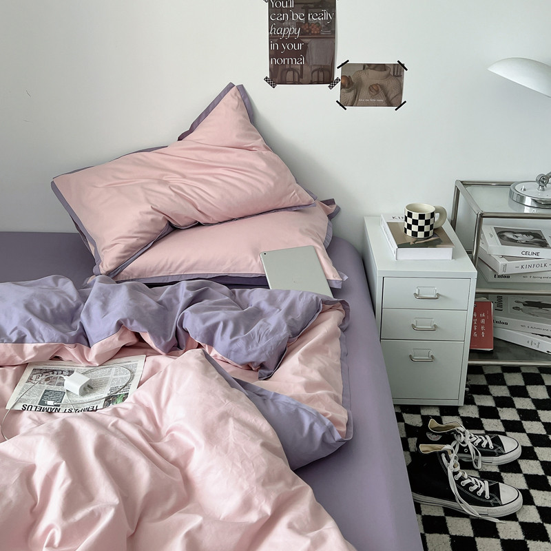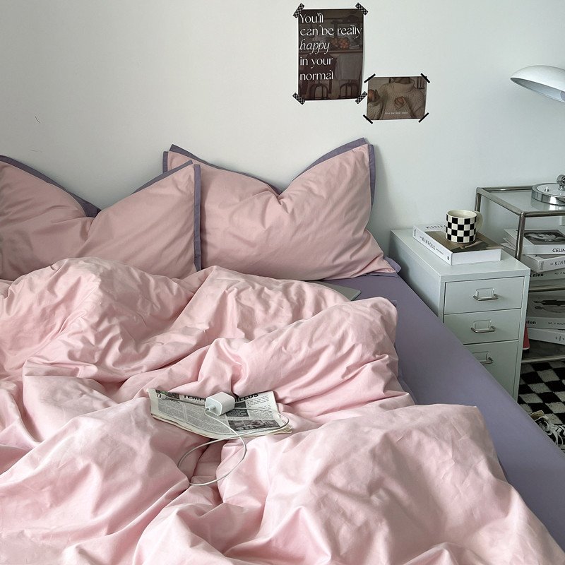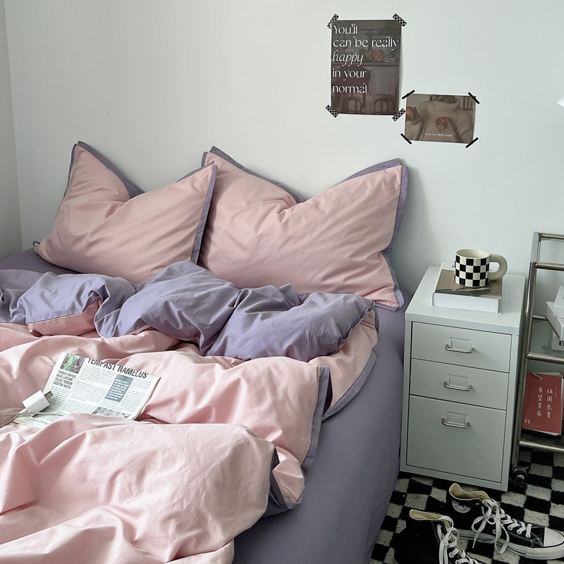 商品名称:安莱生活 2023新款 60贡缎双拼小宽边四件套 嫩粉双拼淡紫