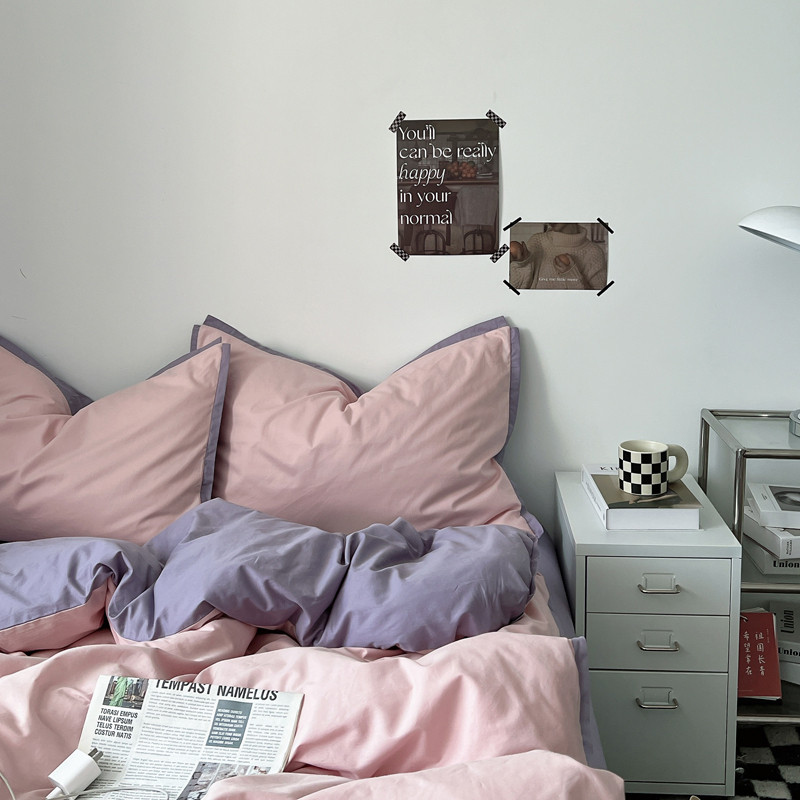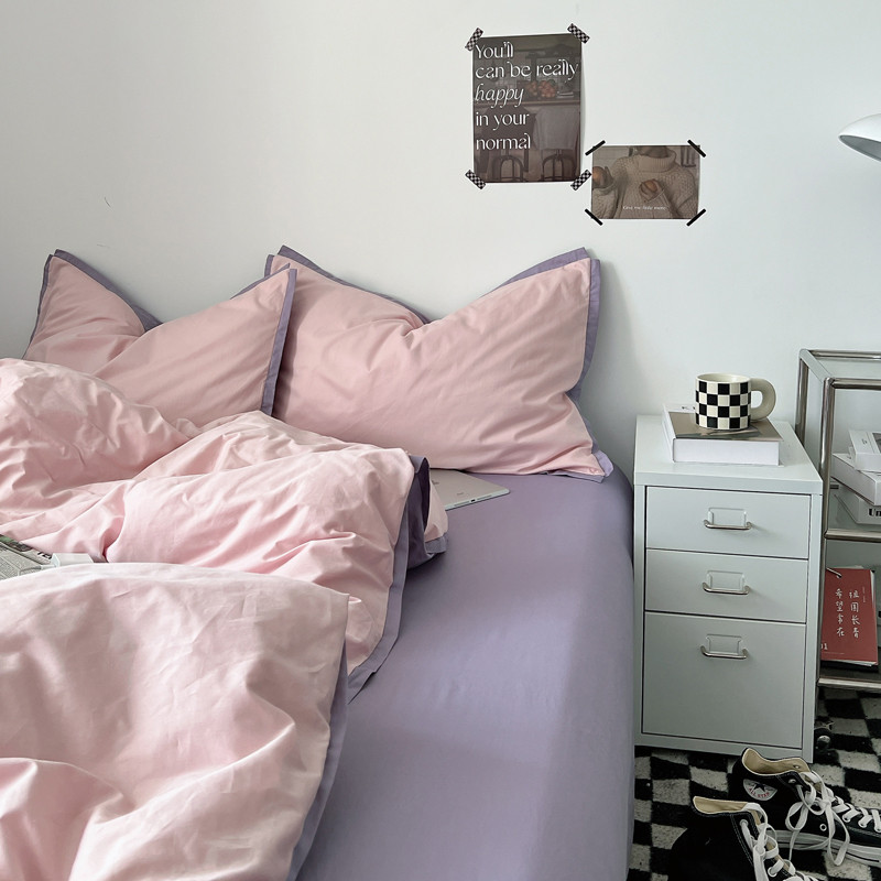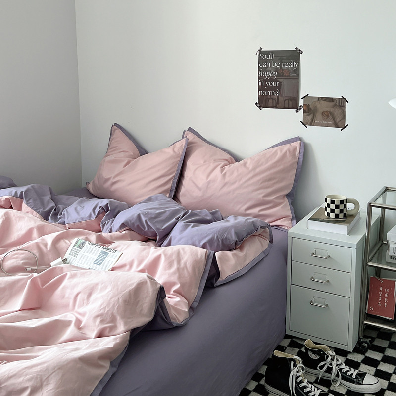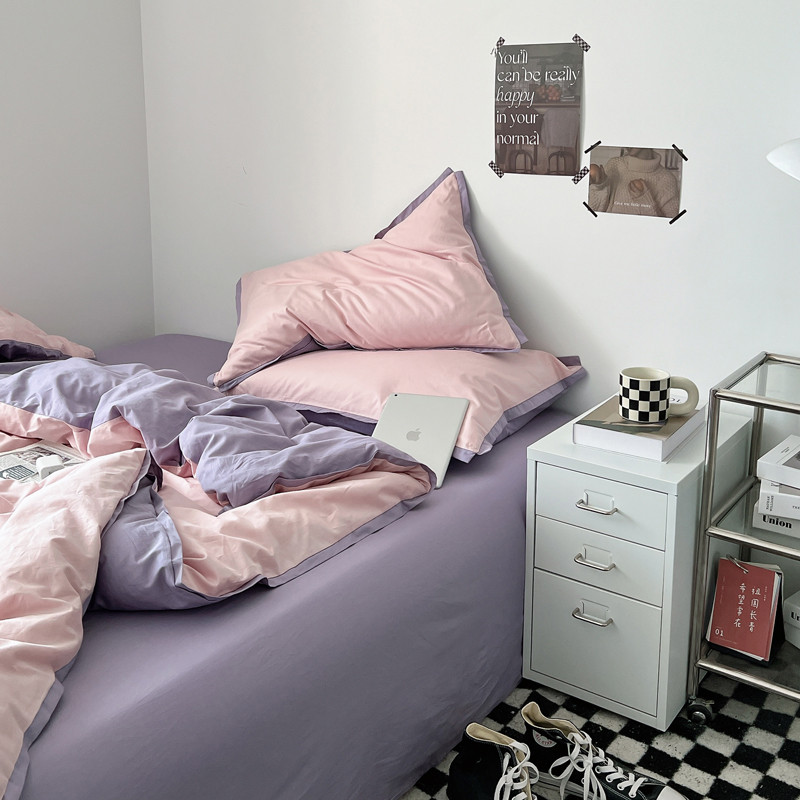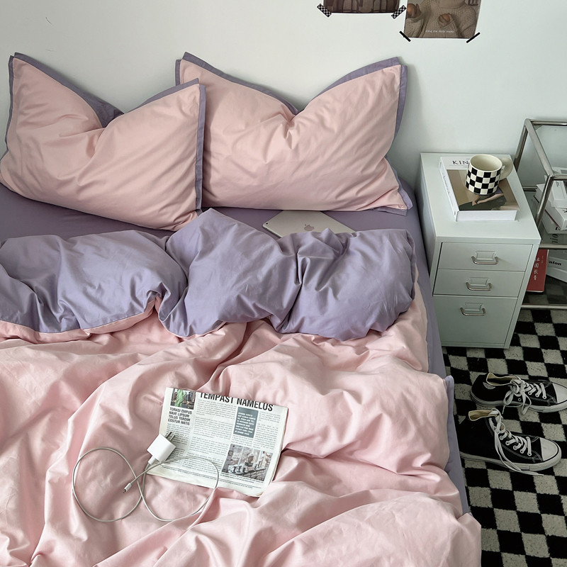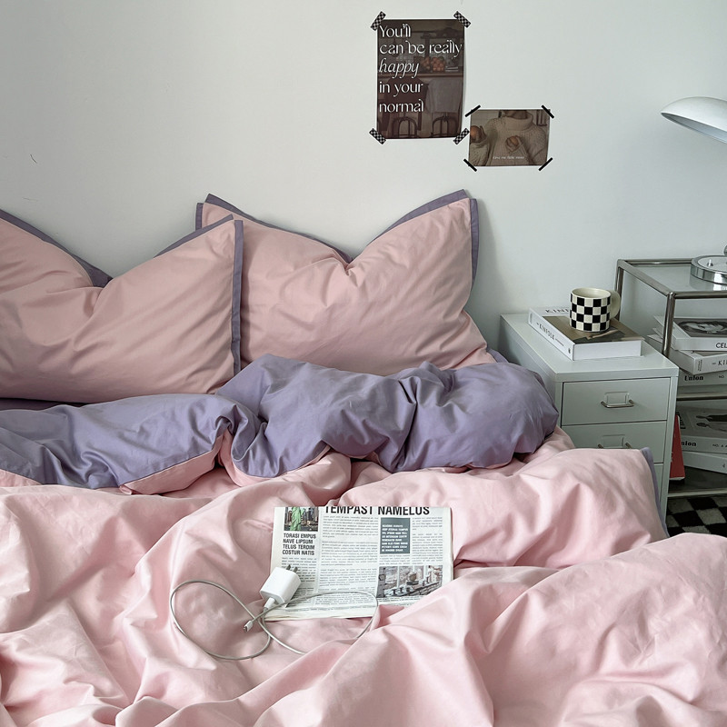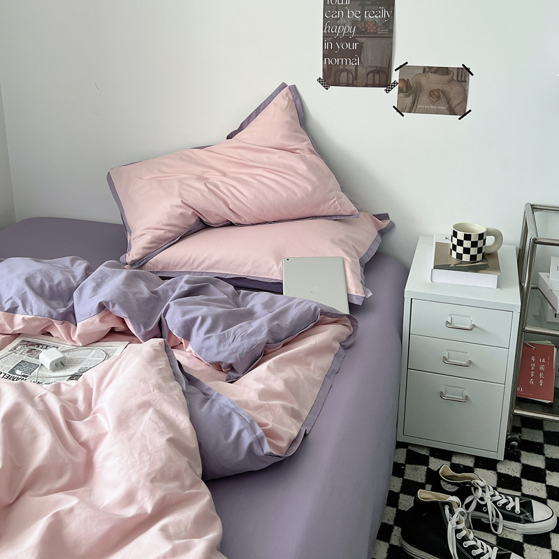商品名称:安莱生活 2023新款 60贡缎双拼小宽边四件套 嫩粉双拼淡紫