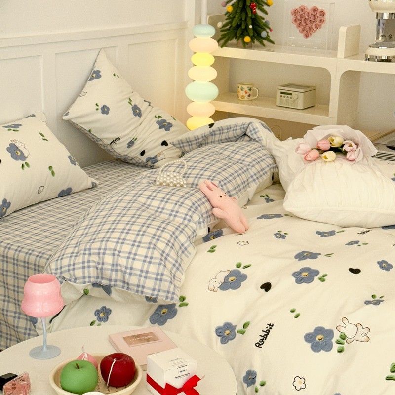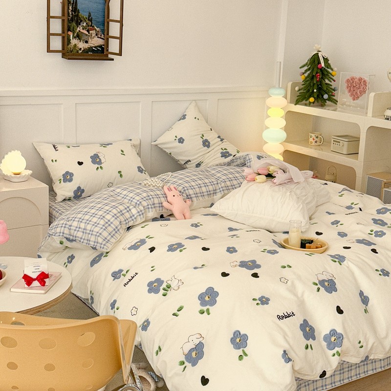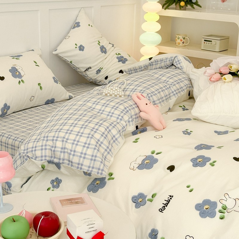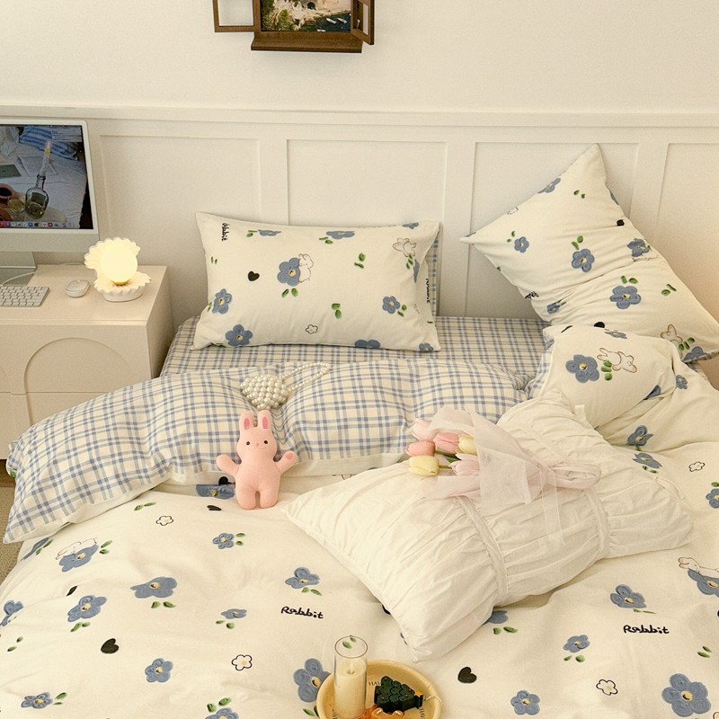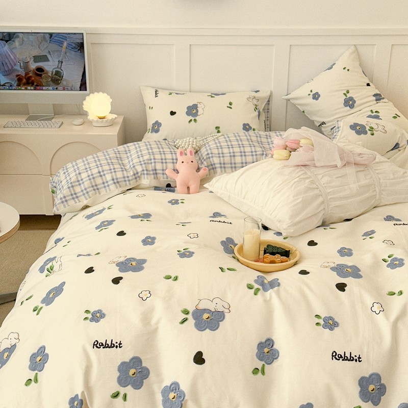 商品名称:昔可 2023春日新款全棉3 兔兔蓝油画花