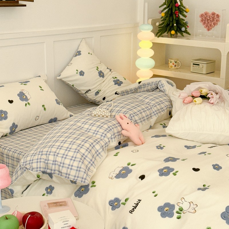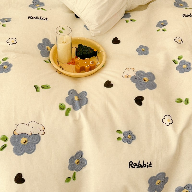 昔可 2023春日新款全棉3 兔兔蓝油画花