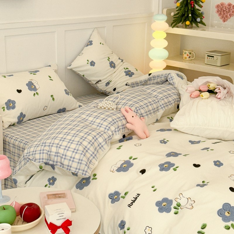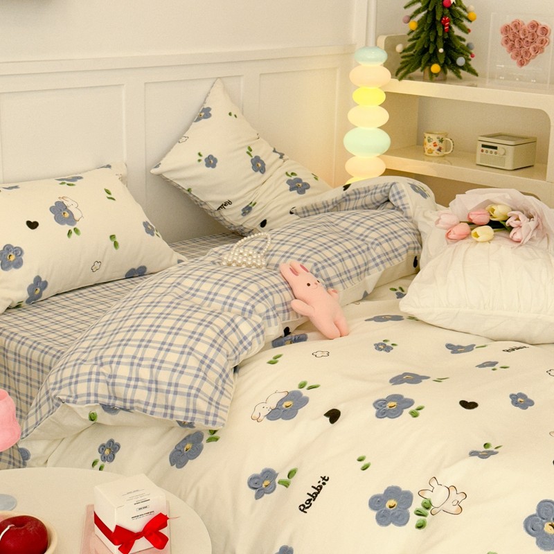 (总)昔可家纺 2024新款印花牛奶绒四件套系列-洛丽塔风,萝莉小兔,小熊烘焙屋,小熊玩偶屋