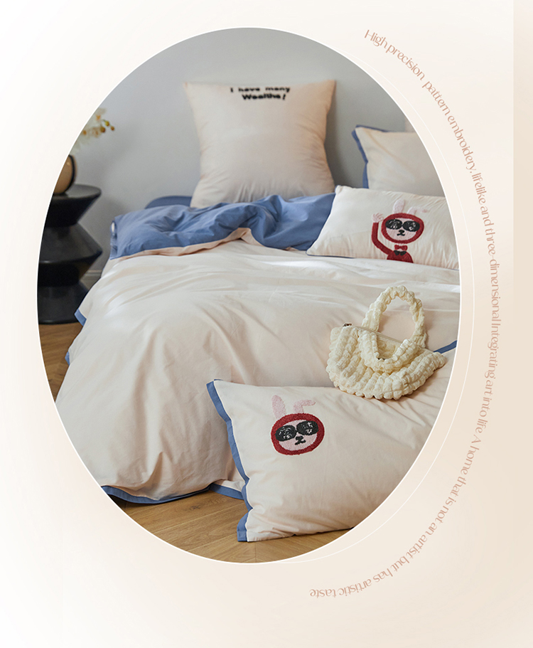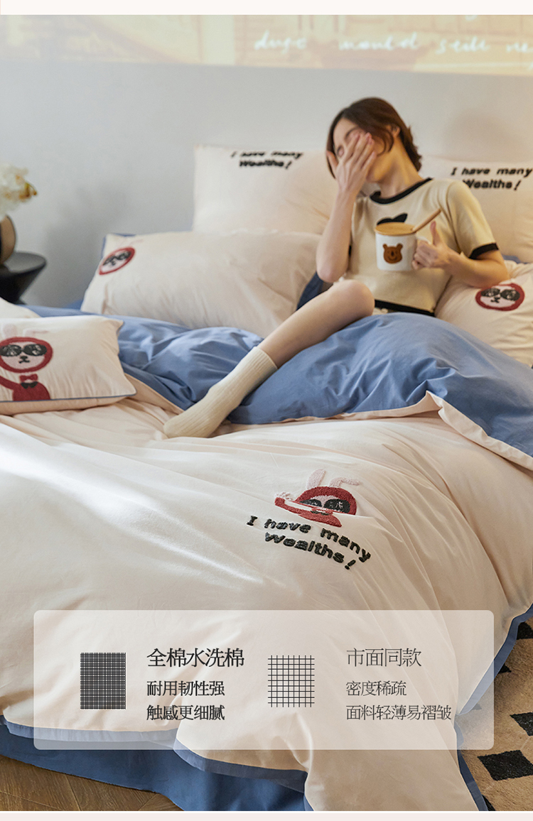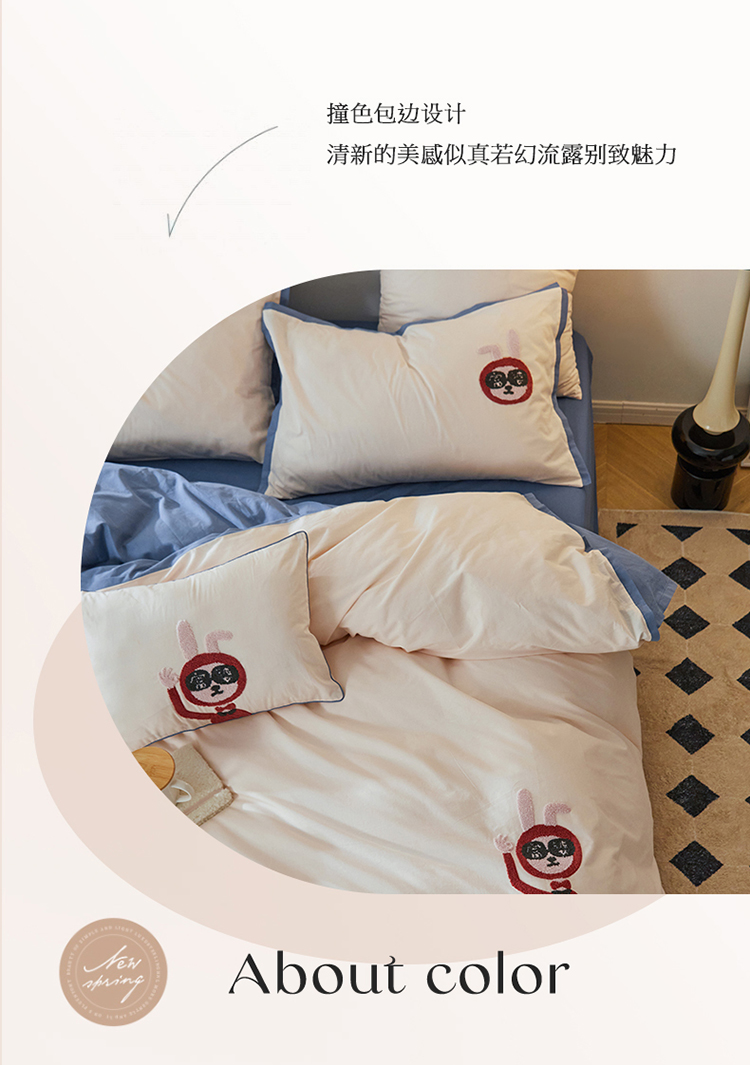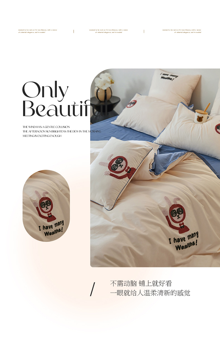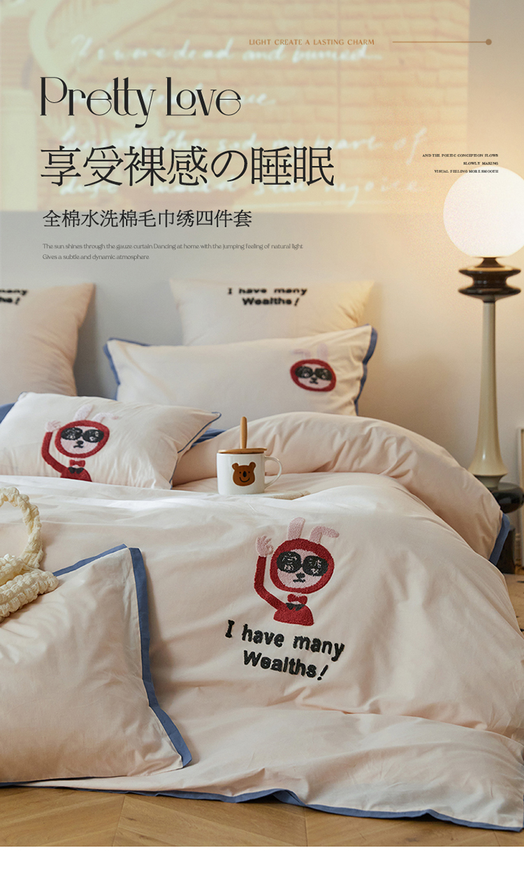 商品名称:名品优仓 2023新款水洗棉毛巾绣撞边款式四件套-玫瑰熊 摩登米兰