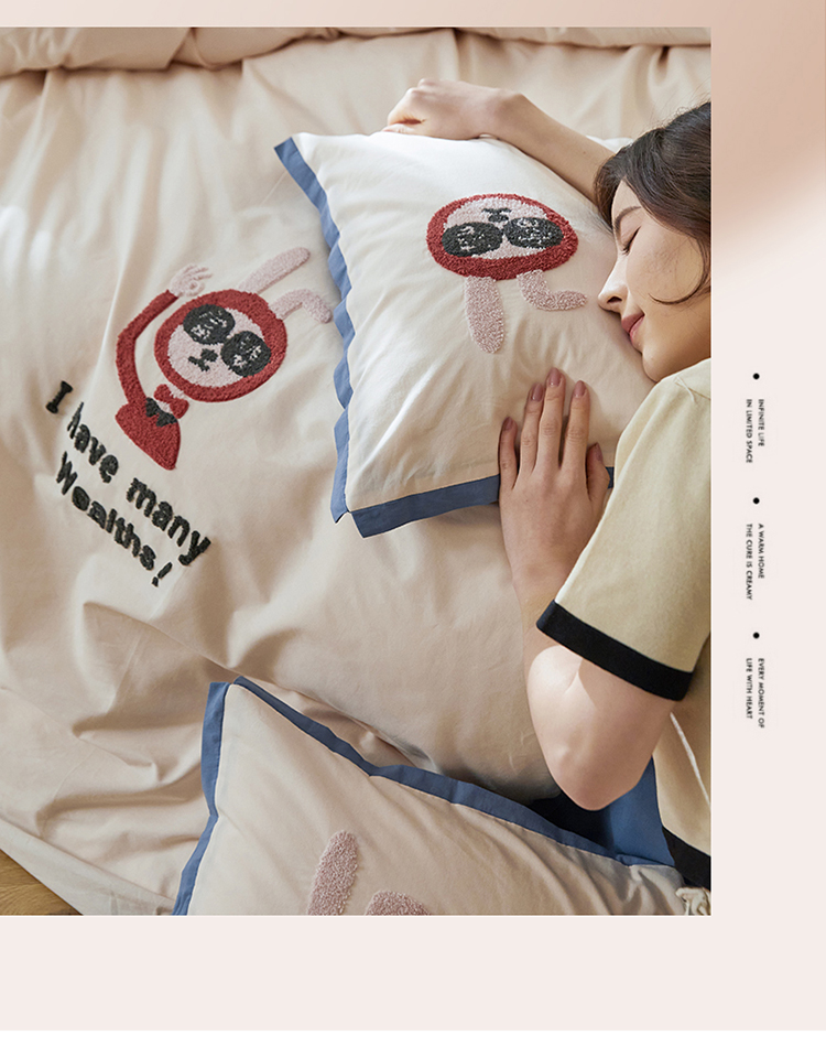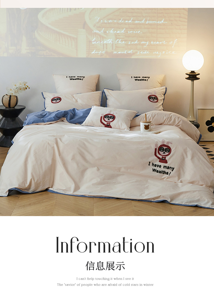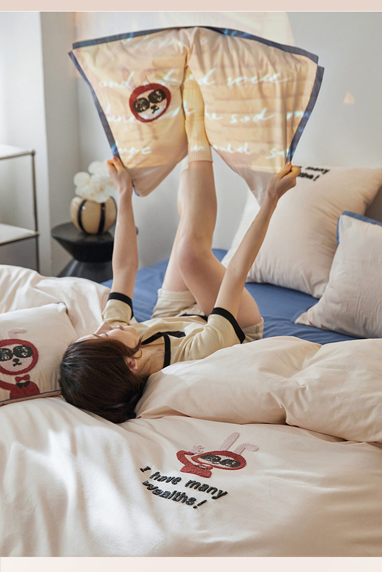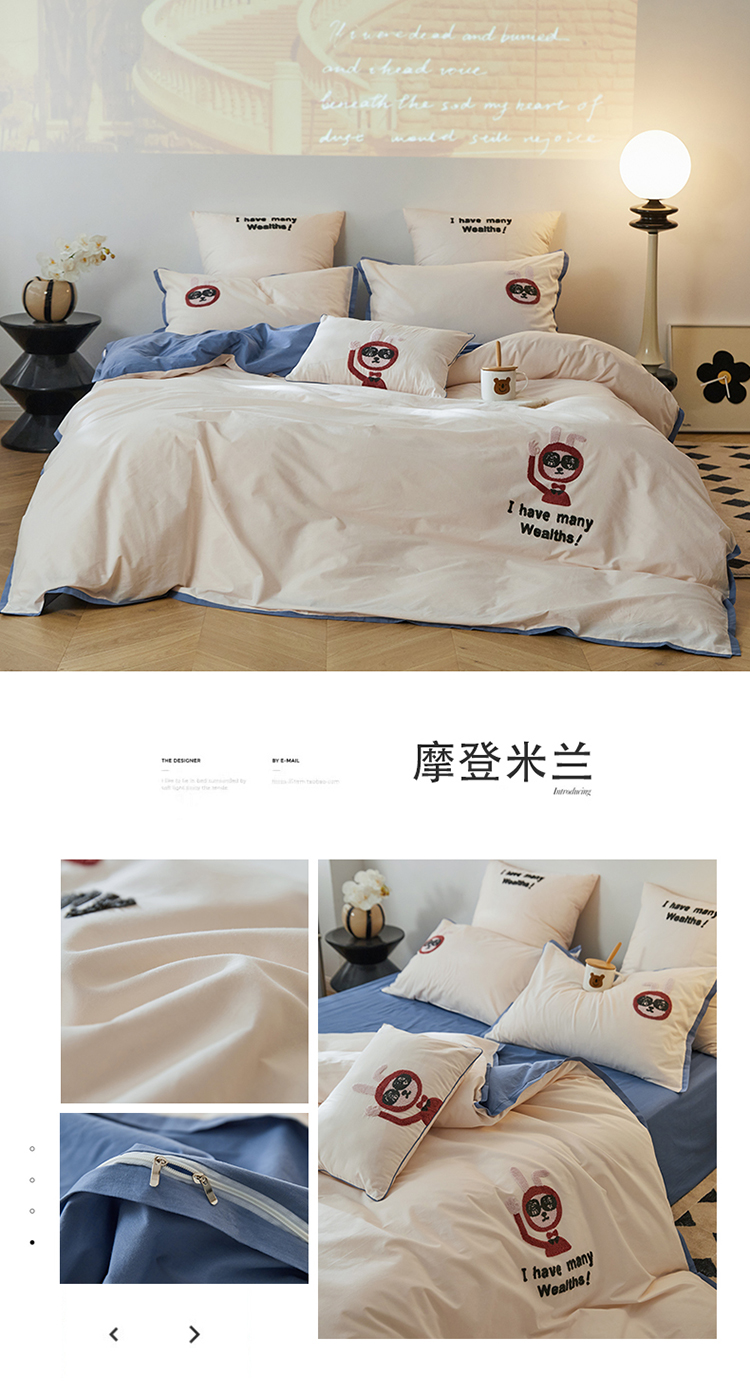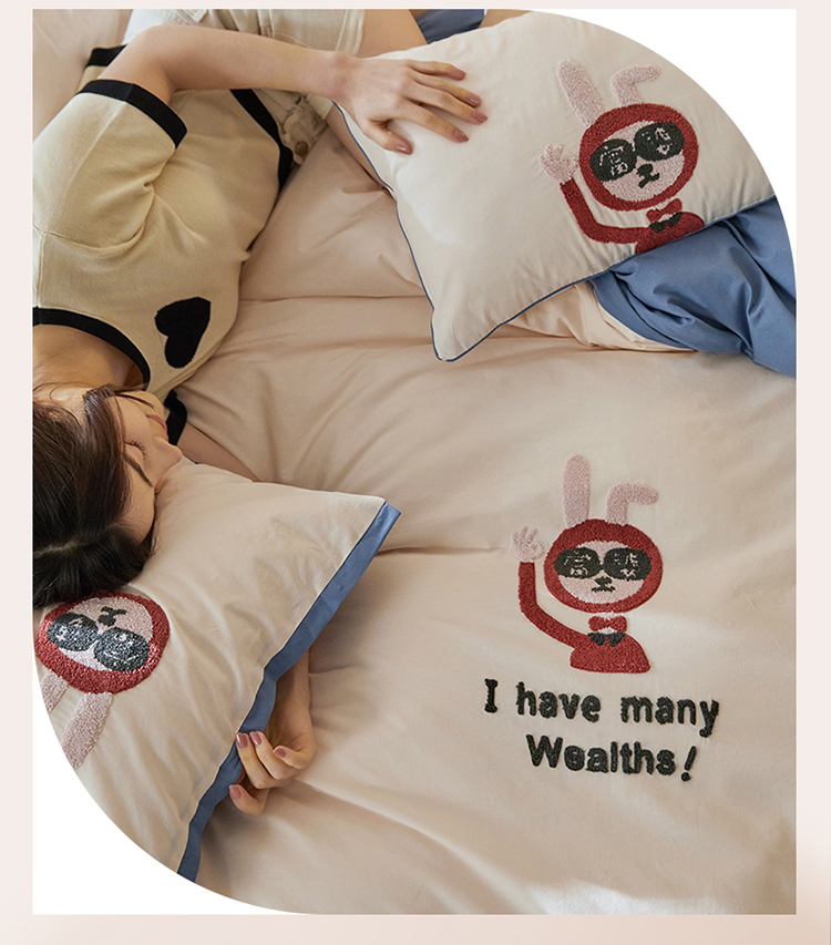 商品名称:名品优仓 2023新款水洗棉毛巾绣撞边款式四件套-玫瑰熊 摩登米兰