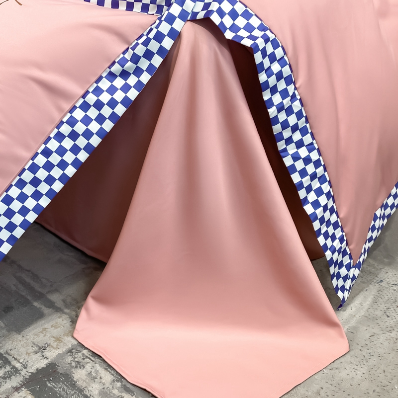 商品名称:伊人居 2023新款棋盘格四件套品尚系列 樱花粉