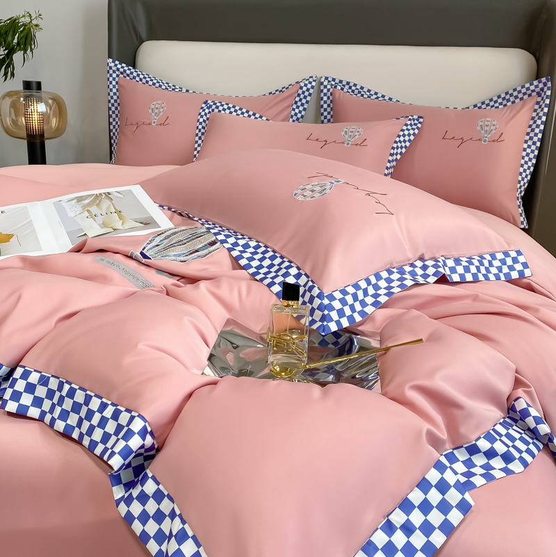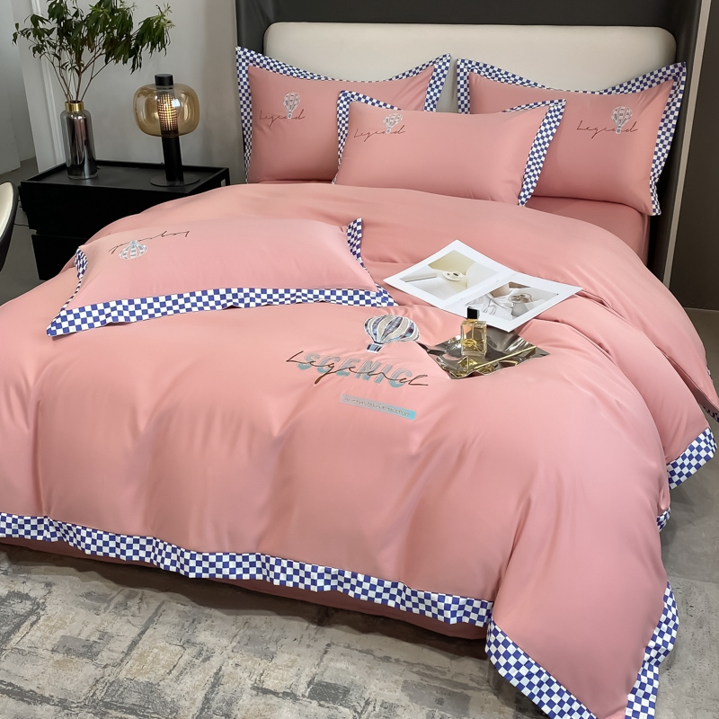 伊人居 2023新款棋盘格四件套品尚系列 樱花粉