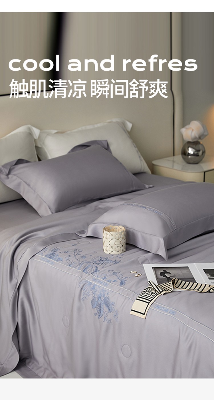 • 91家纺网 家纺一手货源 找家纺 头等舱 森氧丝A类莱赛尔55%大豆抗菌夏被(丽莎系列风格2) 丽莎薄雾灰