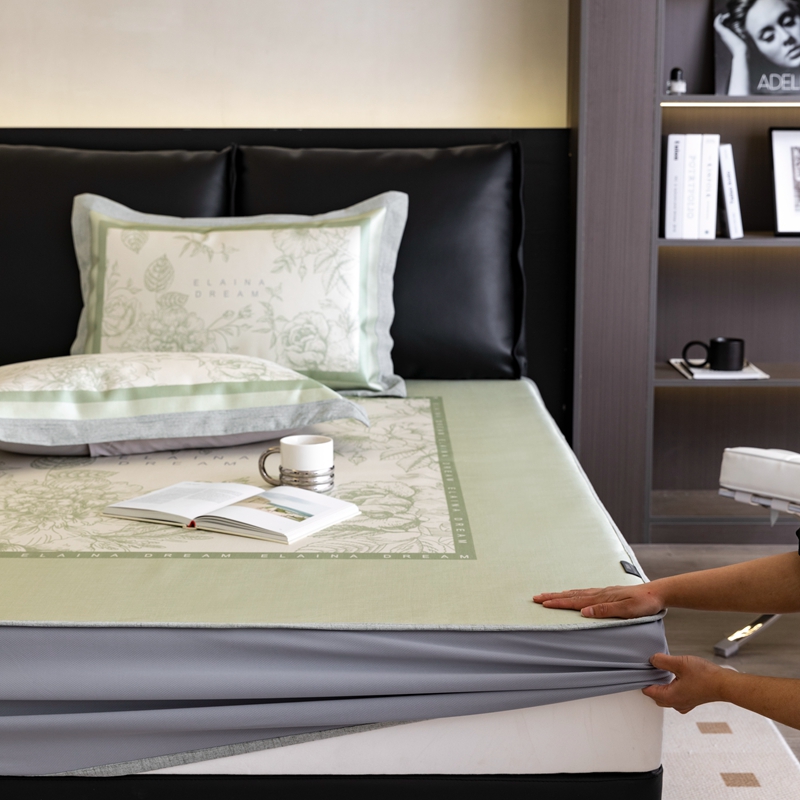 2023新款高端可水洗冰丝席床笠款 伊莲娜-绿 床笠