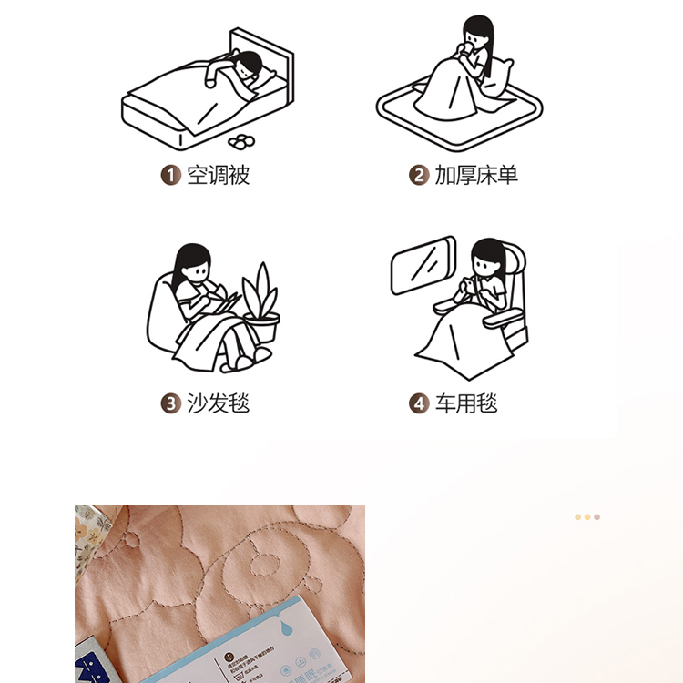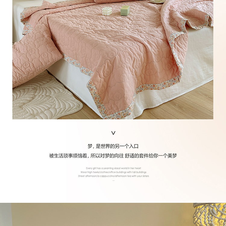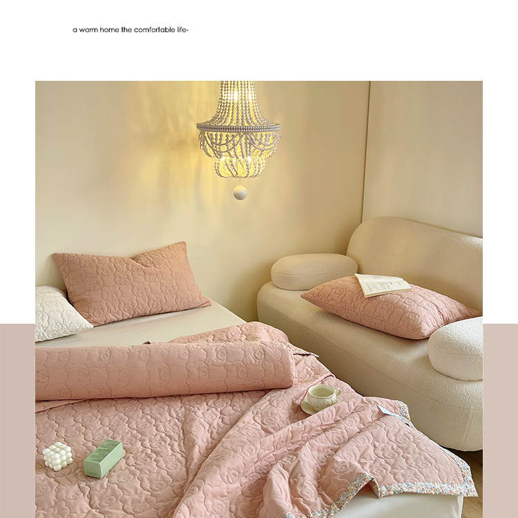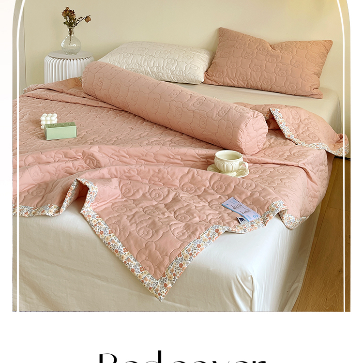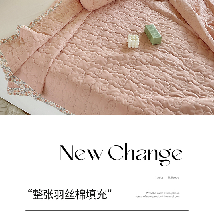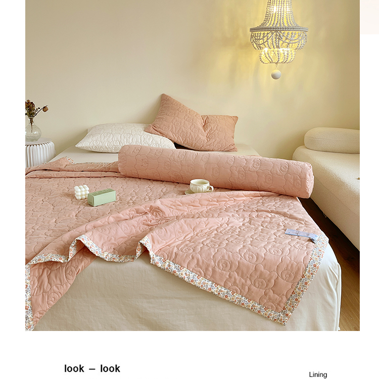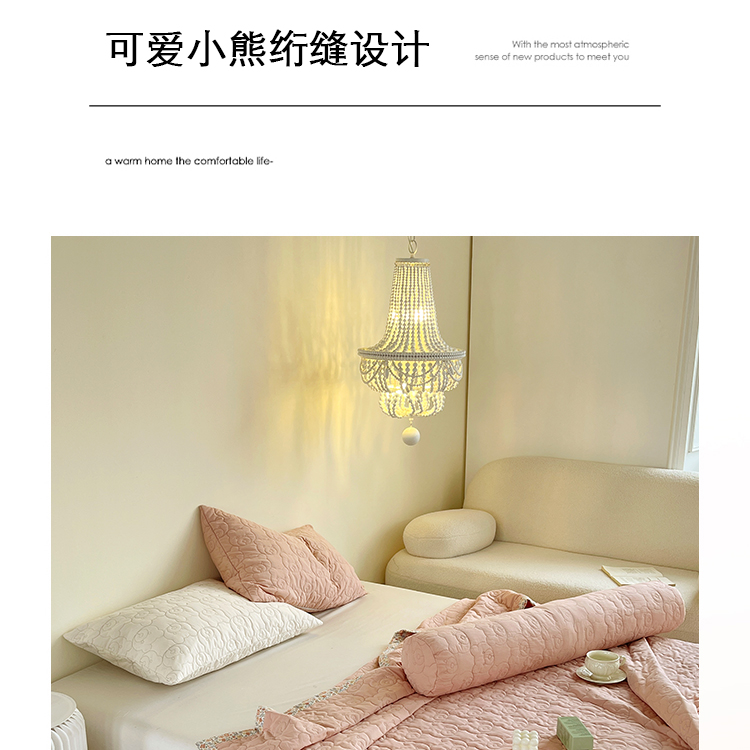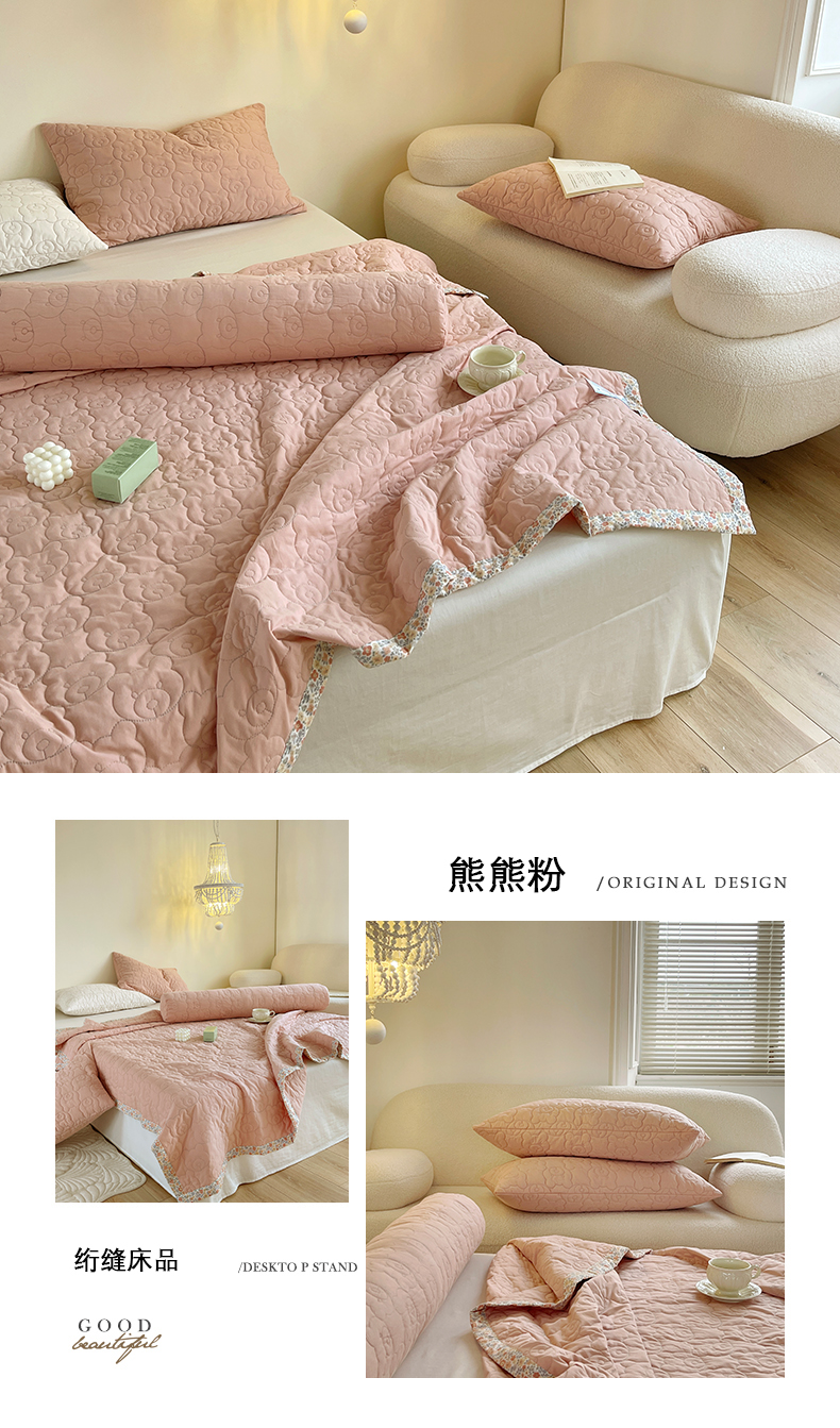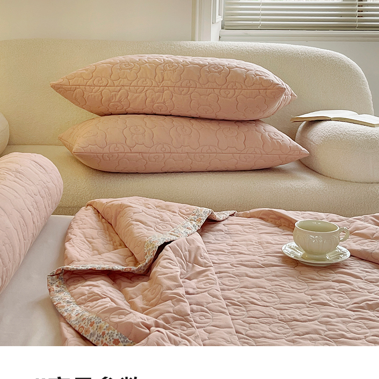 商品名称:网客家纺 2024新款全棉绗缝夏被床盖三件套 熊熊粉