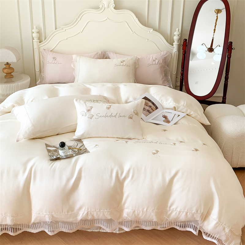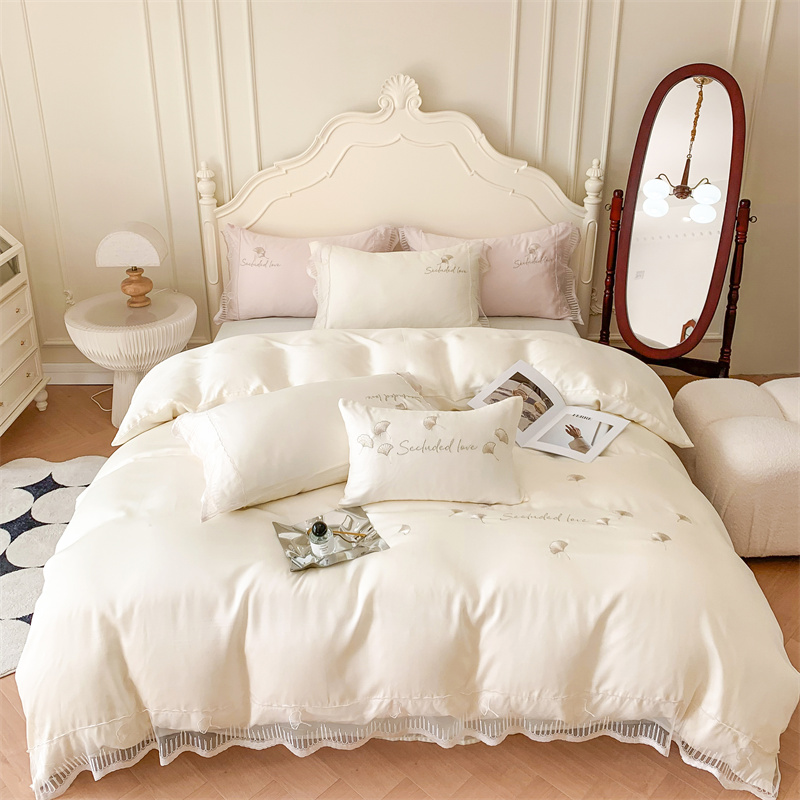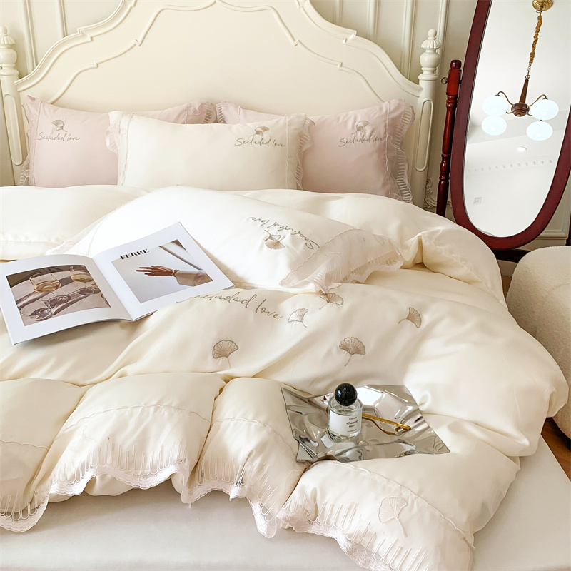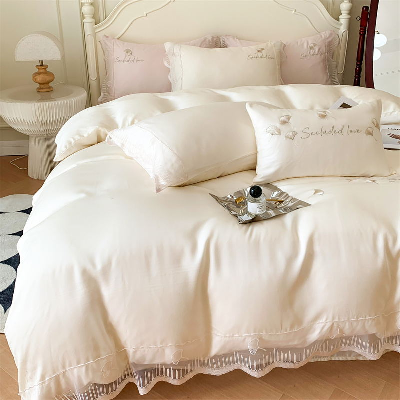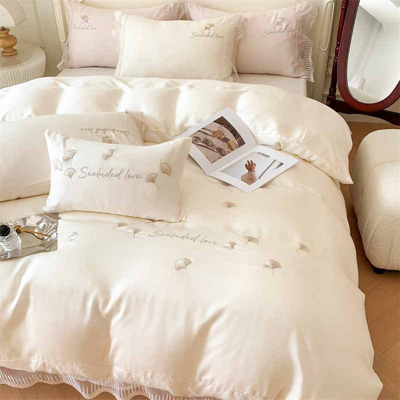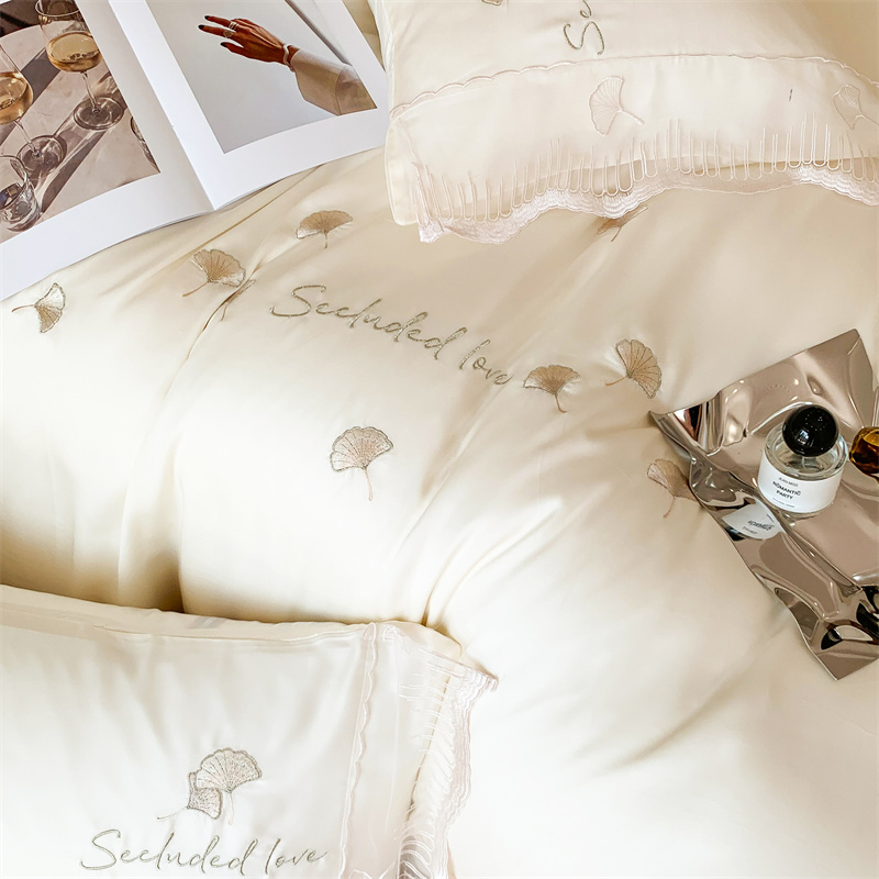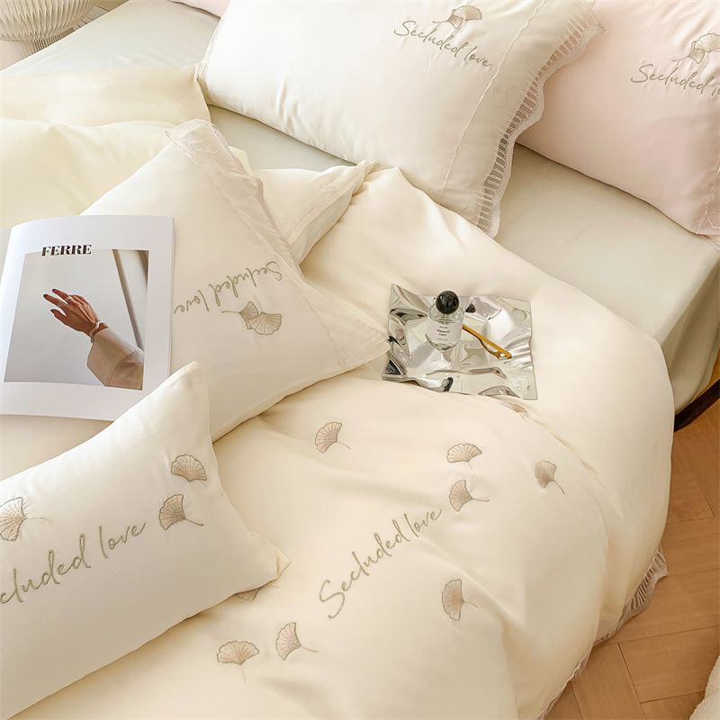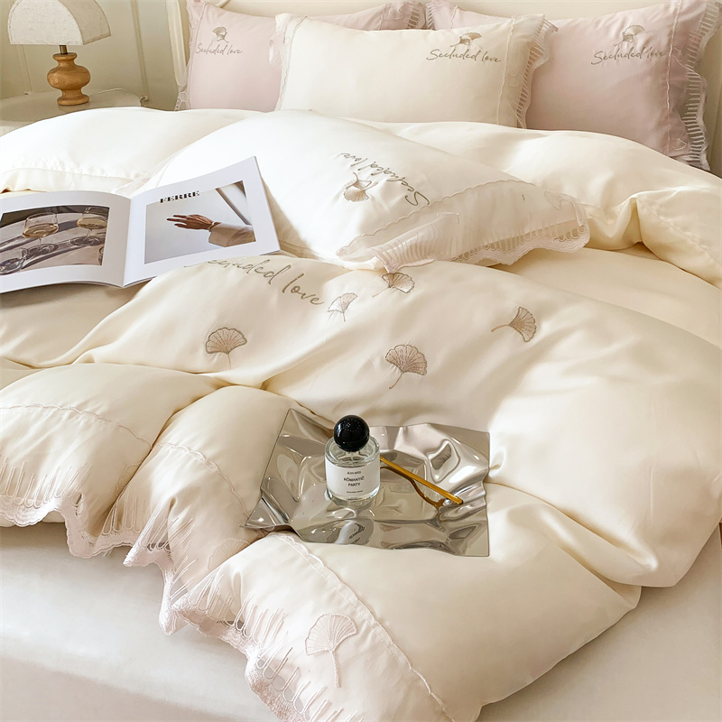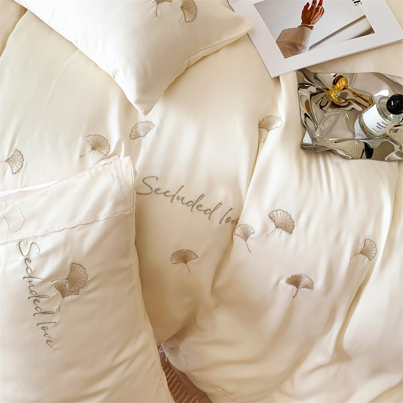 曼布缇2025新款春夏新品100S莱赛尔天丝四件套-流金岁月 奶白
