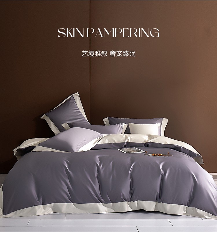 嘉恋 2023新款140支匹马棉拼角四件套送高端礼盒-仲夏夜之梦 石英紫