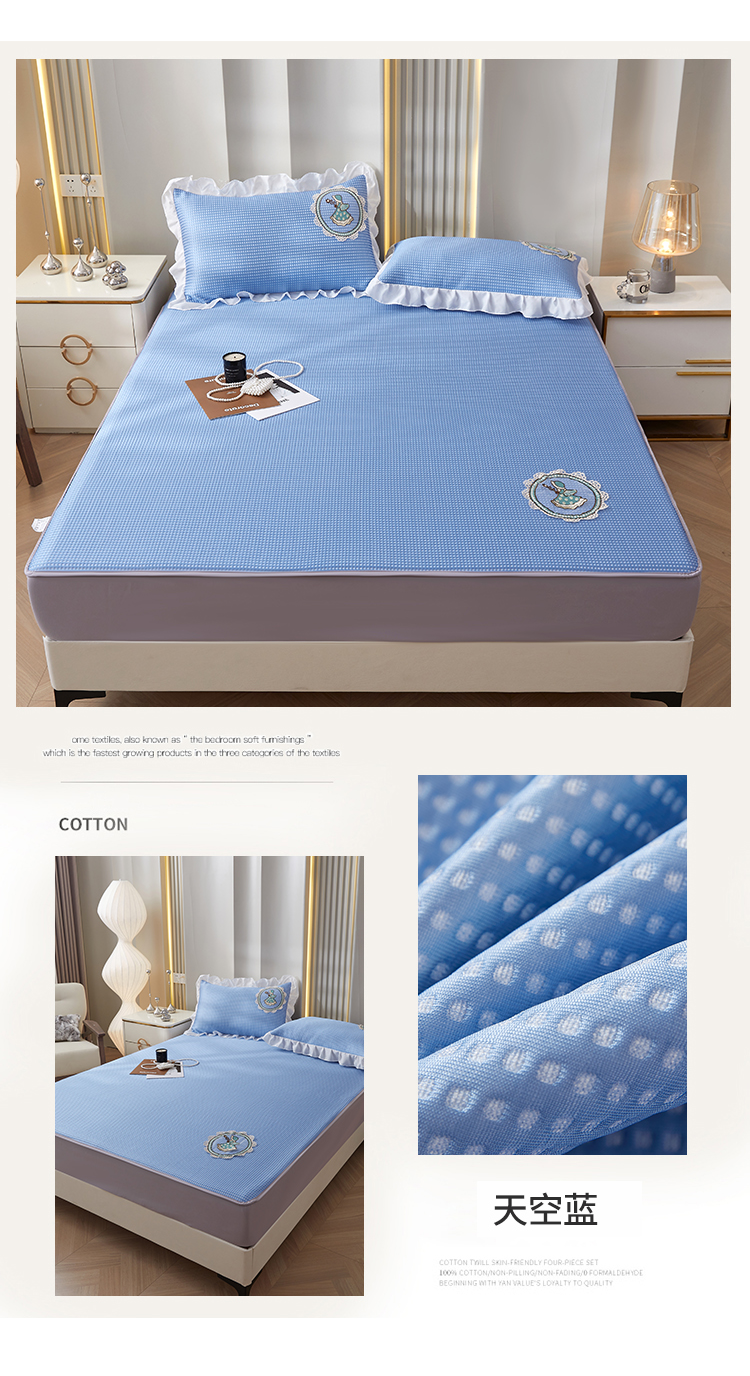 商品名称:家之硕2024新款A类华夫格冰爽软床笠款花边凉席三件套天空蓝