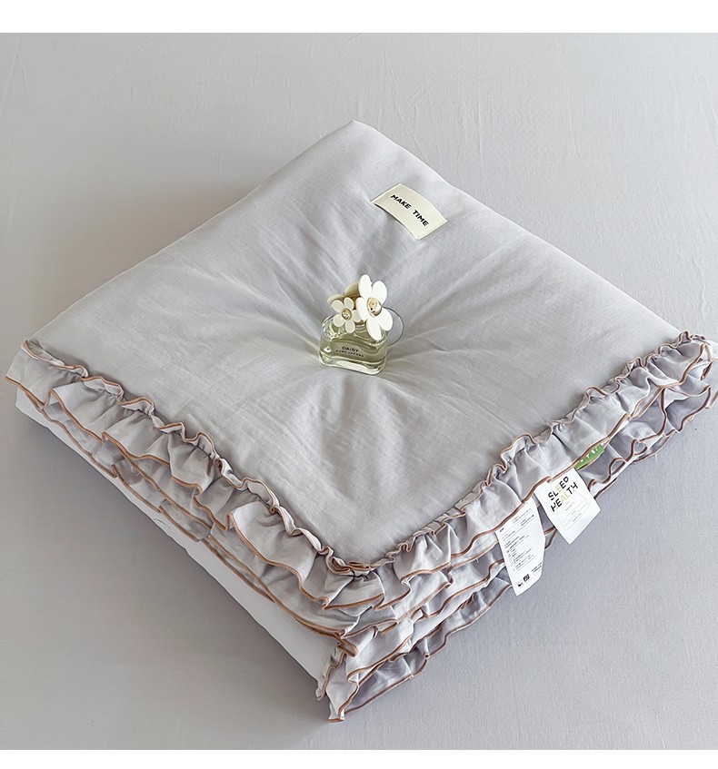 商品名称:荣轩 2023新款素色双层纱夏被-花边款 青城灰