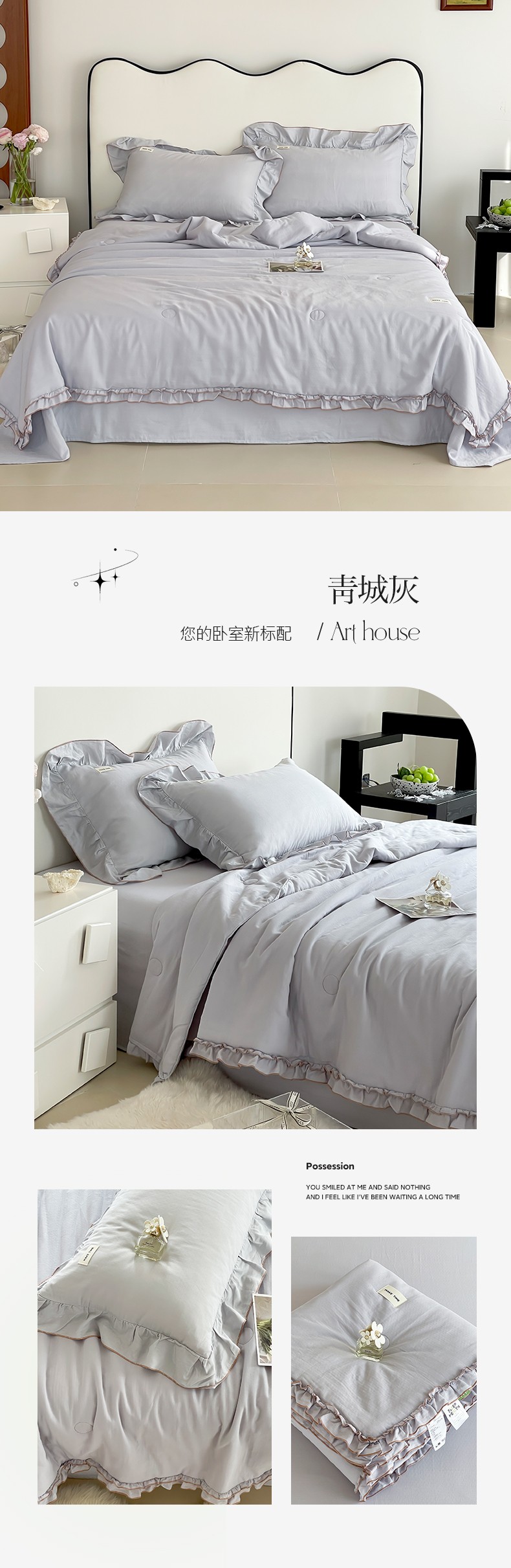 荣轩 2023新款素色双层纱夏被-花边款 青城灰