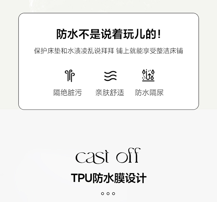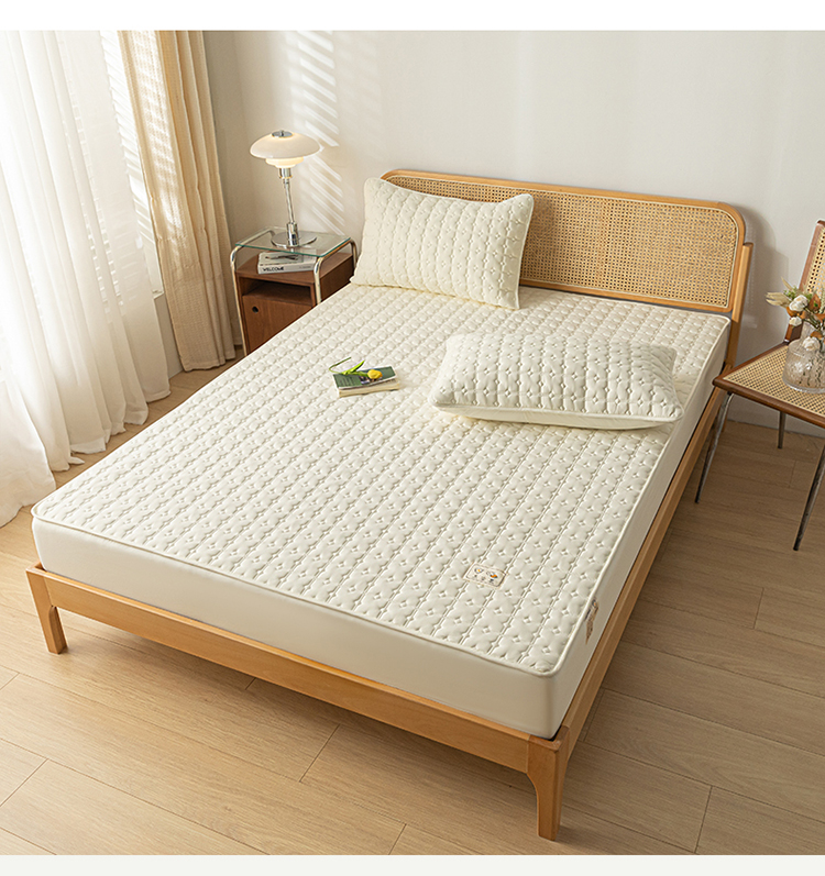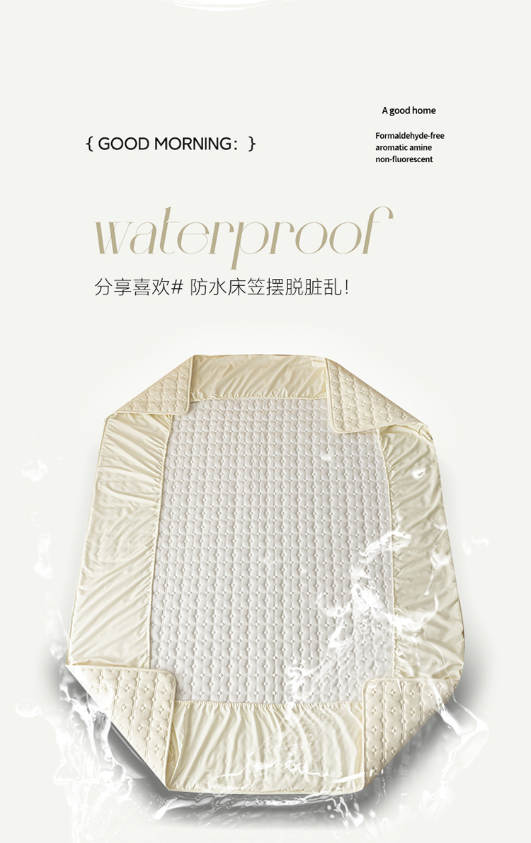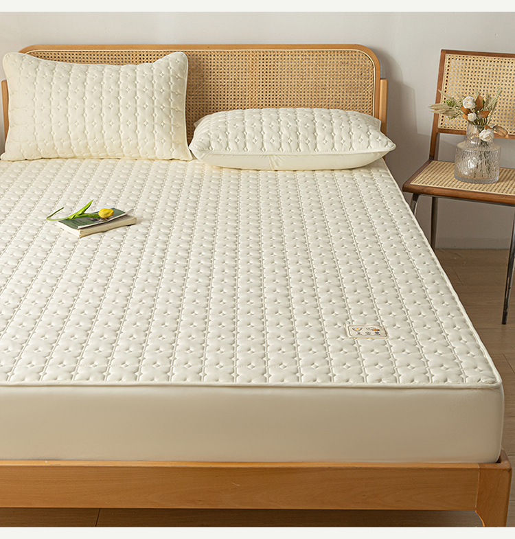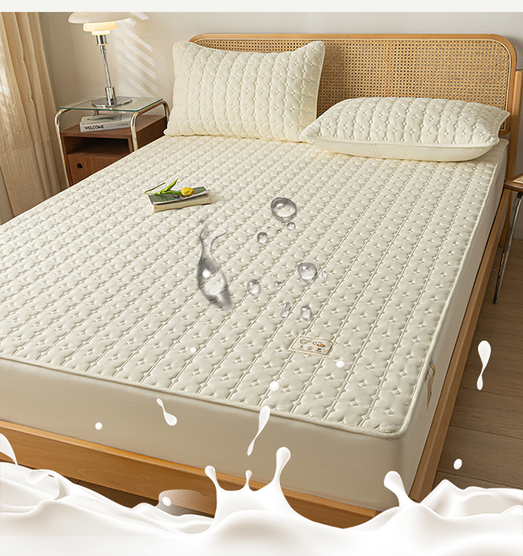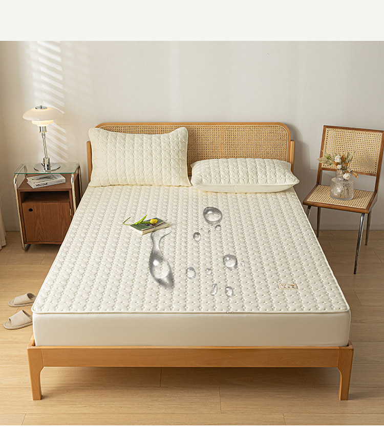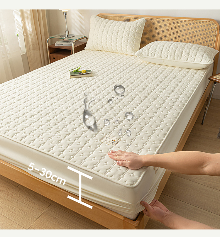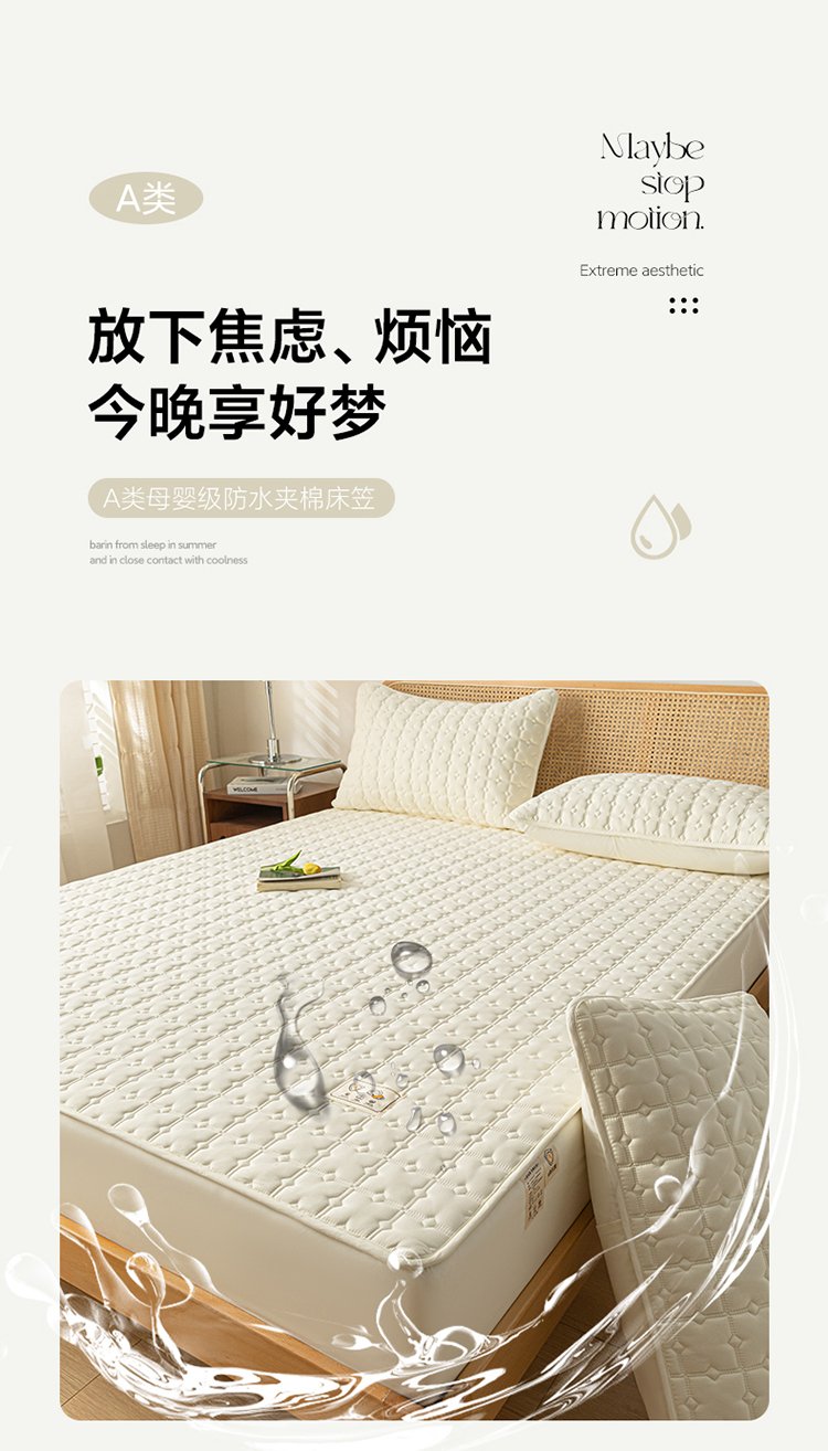 芬晴家纺 2023新款A类母婴级防水夹棉床笠 梦幻-米白