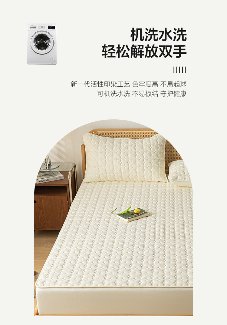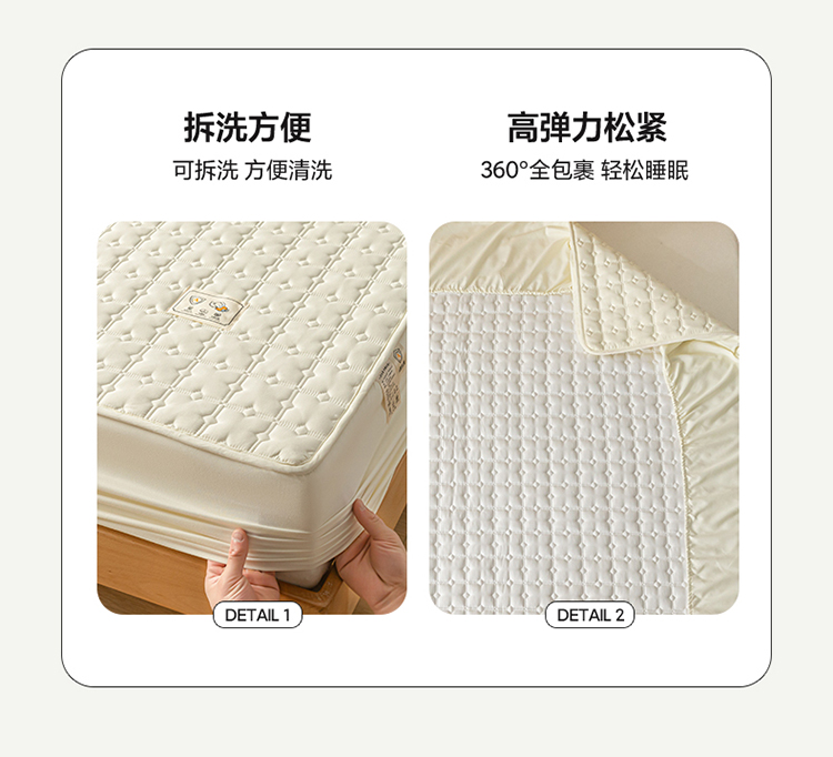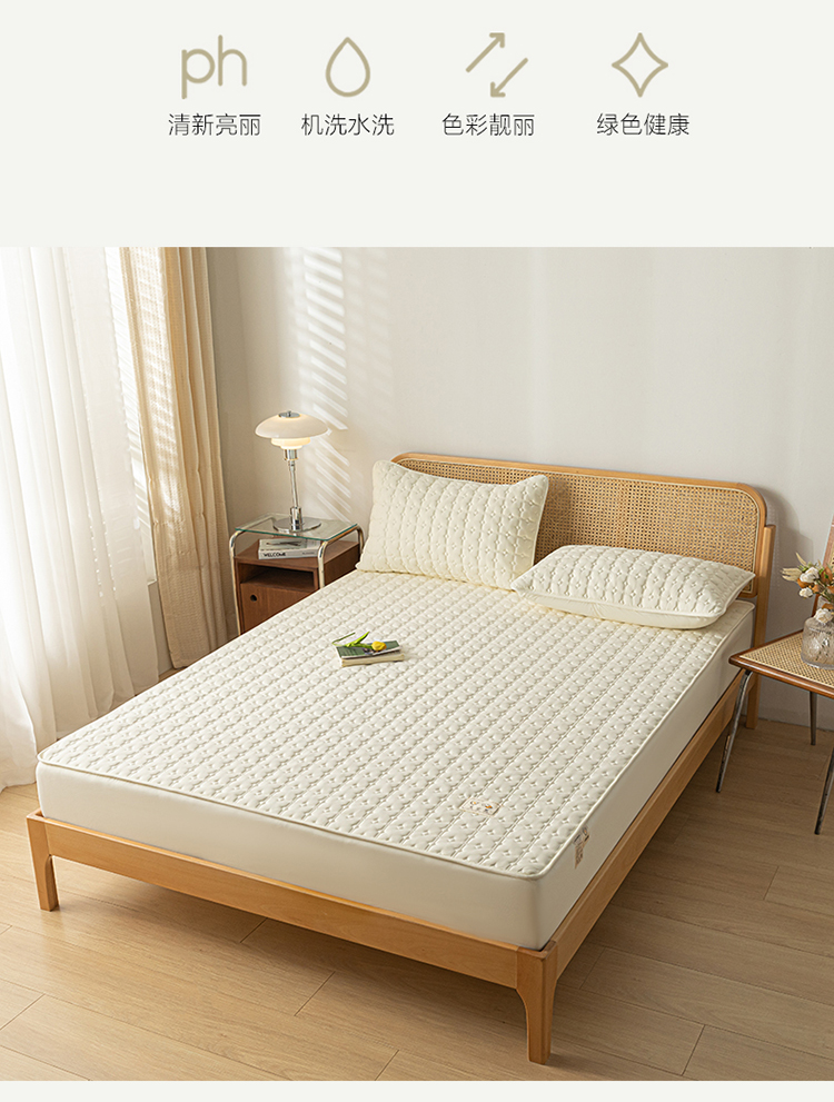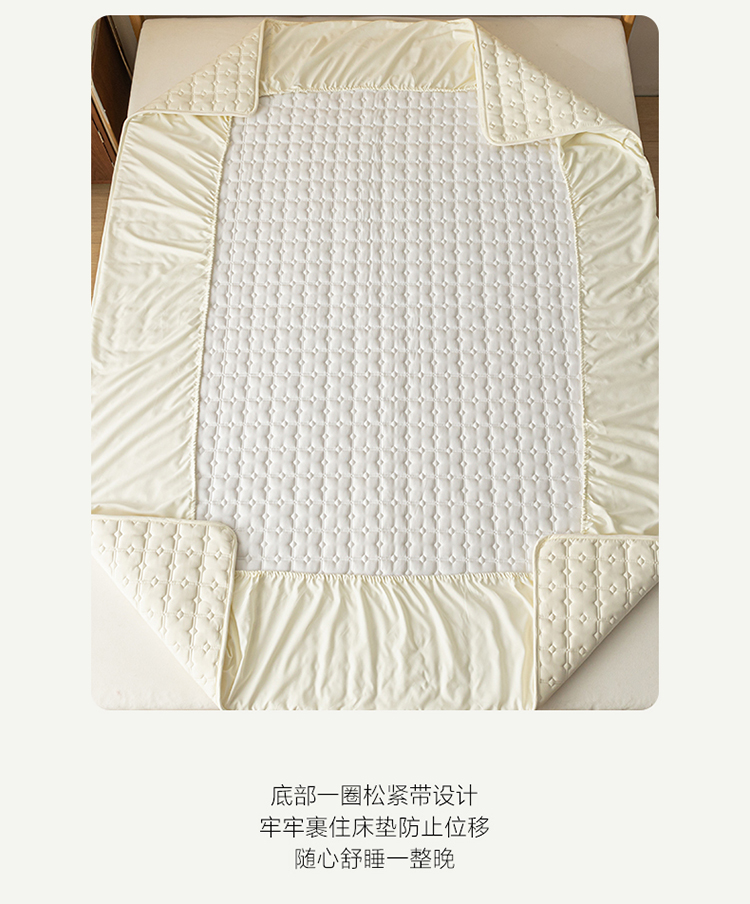 • 91家纺网 家纺一手货源 找家纺 芬晴家纺 2023新款A类母婴级防水夹棉床笠 梦幻-米白