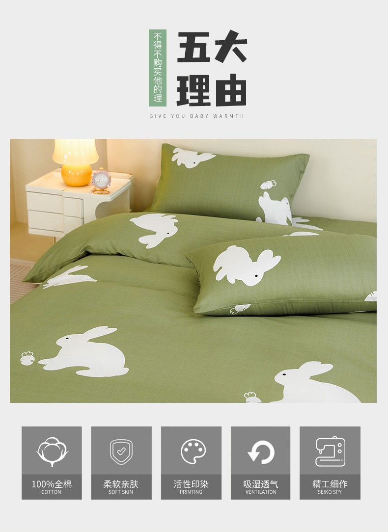 • 91家纺网 家纺一手货源 找家纺 芃成 2023新款全棉13070单被套 可爱兔