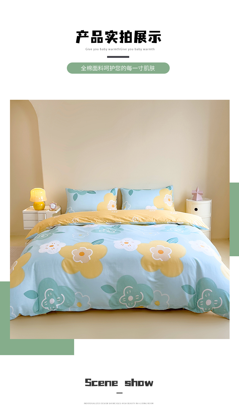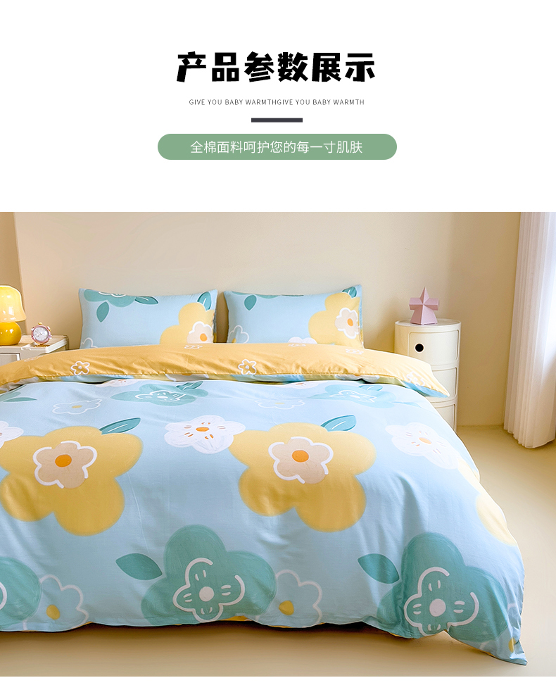 商品名称:芃成家纺 2023新款全棉13070四件套 春天里 蓝