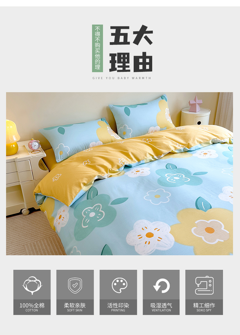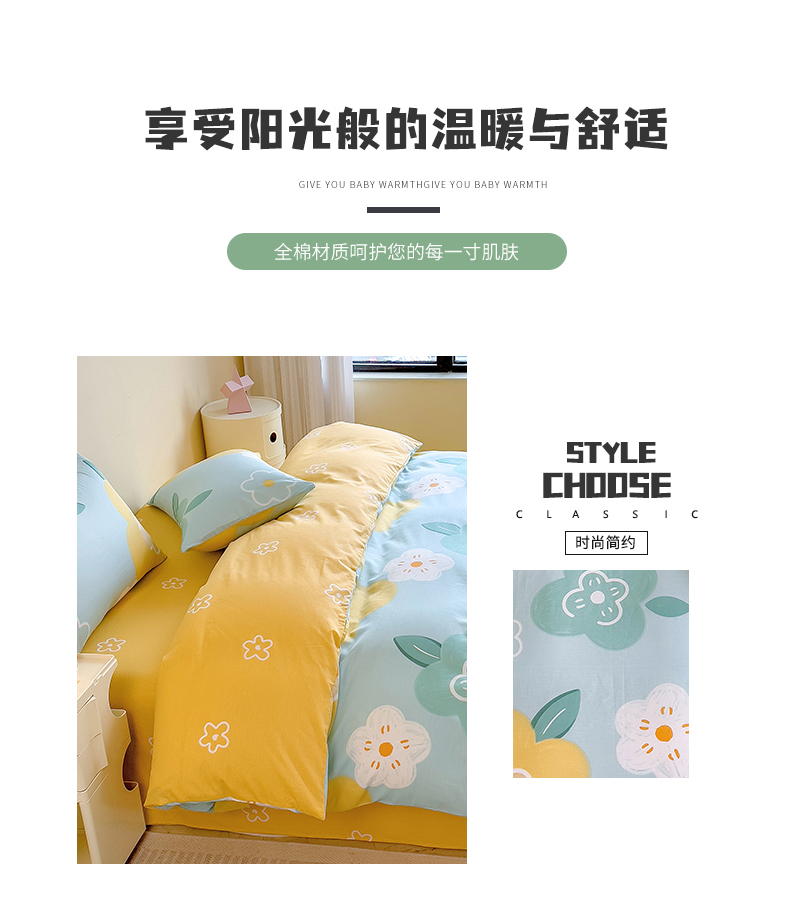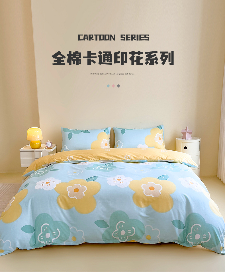 芃成家纺 2023新款全棉13070四件套 春天里 蓝