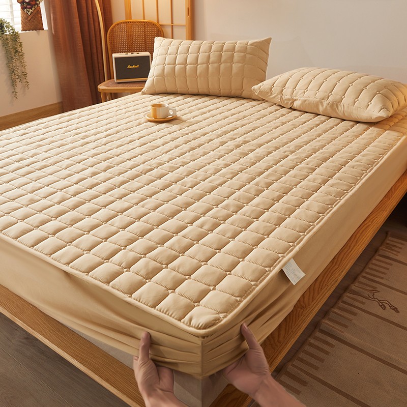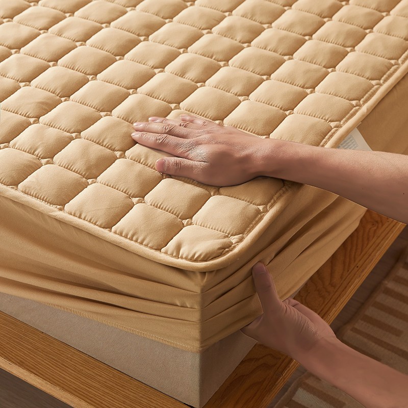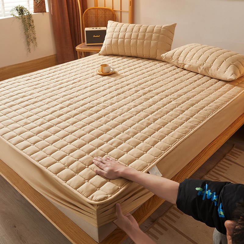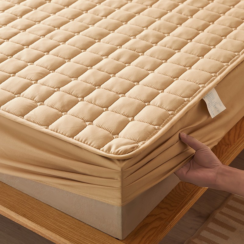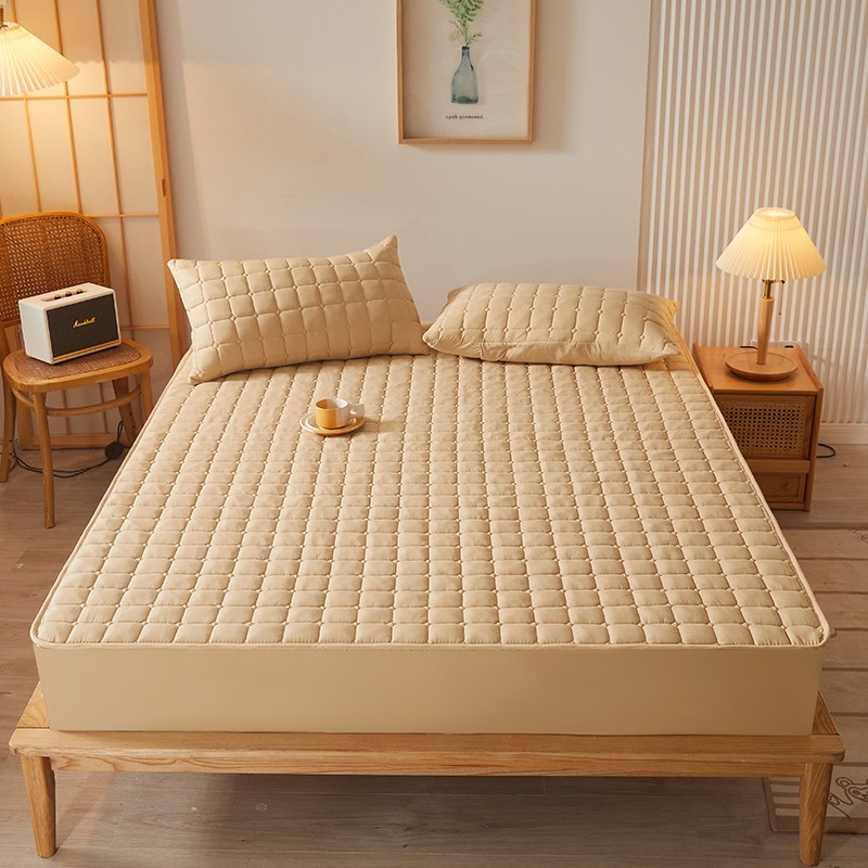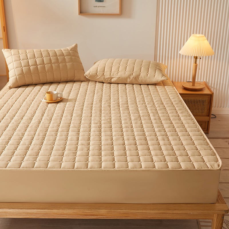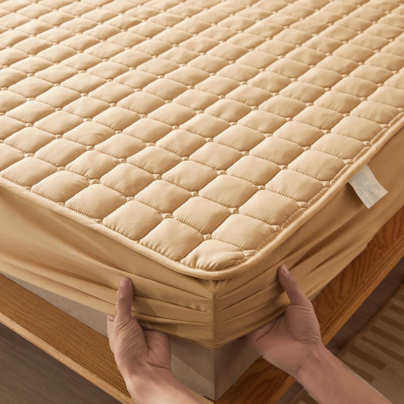 商品名称:乐逸2023新款亲肤夹棉防水床笠 小方格驼